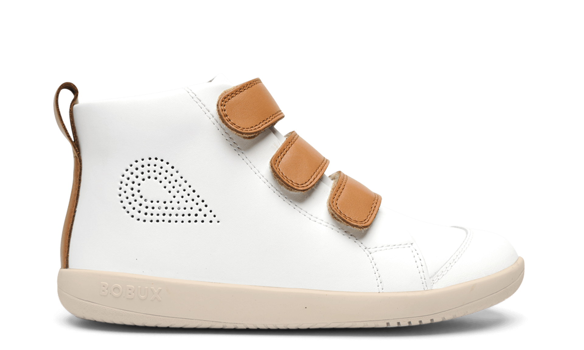 Bobux - Hi Court - White + Caramel