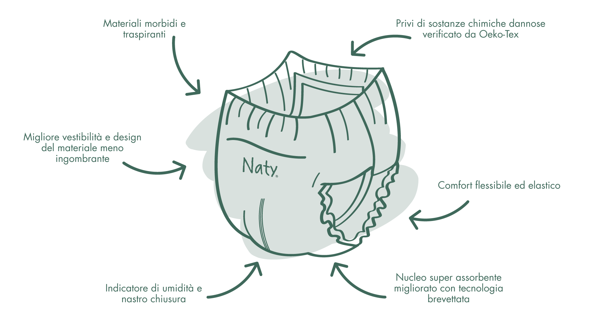Bieten Sie Ihrem Baby nur das Beste mit Naty Eco Windeln. Dank des superweichen Materials auf pflanzlicher Basis sind sie atmungsaktiv und bequem, um Dermatitis und unangenehmen Reaktionen vorzubeugen. Mit den Eco by Naty Windeln wird die zarte Haut Ihres Babys wie durch eine Liebkosung verwöhnt.