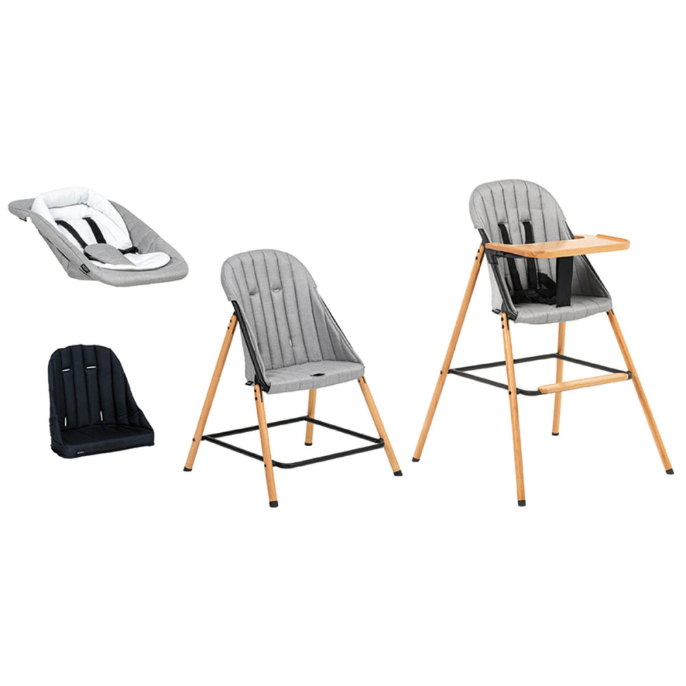 Evolutionärer Hochstuhl + Satz Holzbeine + Babywippe New Born + Reduzierstück.