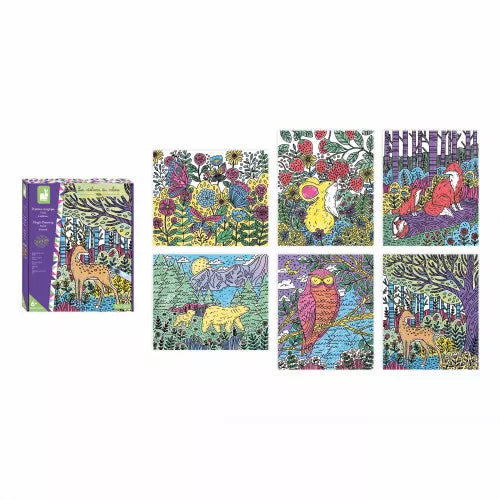 Hier ist eine geniale Aktivität, mit der Kinder ab 6 Jahren mit nur wenig Wasser großartige Bilder erstellen können! Mit dem Spezialpinsel mit Reservoir müssen die schwarzen Umrisse jedes Quadrats sorgfältig angefeuchtet werden, damit prächtige Farben entstehen. Diese kreative Aktivität erfordert weder Tempera noch Aquarellfarben und ermöglicht es bereits den Kleinsten, spektakuläre Ergebnisse zu erzielen. Das Set enthält 6 Quadrate magischer Farbe. Im Wald werden prächtige Wildtiere auftauchen! Kinder lernen, präzise zu sein, um das Mischen von Farben zu vermeiden. Die Anleitungsbroschüre hilft ihnen dabei, die niedlichen Bilder zum Leben zu erwecken! Und als ob das noch nicht genug wäre, verwandelt sich die Box in einen Rahmen, der Ihre Kreationen hervorhebt! Es dauert etwa 1 Stunde, jedes Quadrat fertigzustellen. Diese Aktivität fördert die Feinmotorik und Geduld.