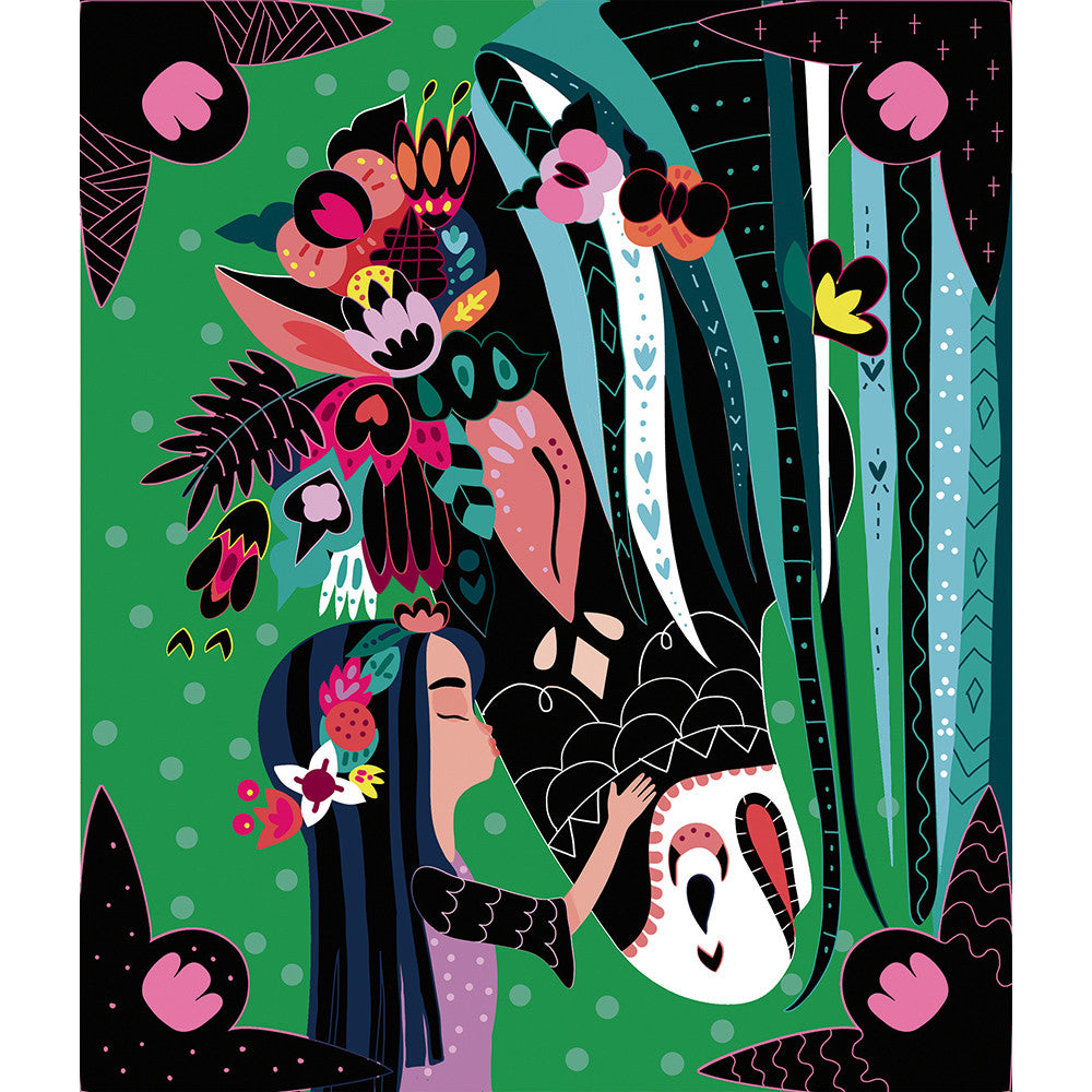 8 Rubbelvorlagen, 1 Holzwerkzeug und 1 Heft mit Mustern und Anleitungen.