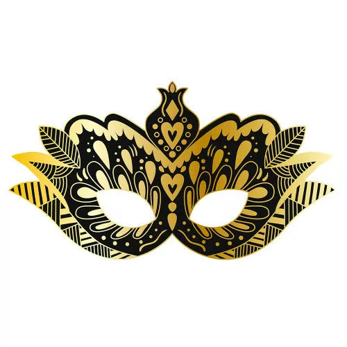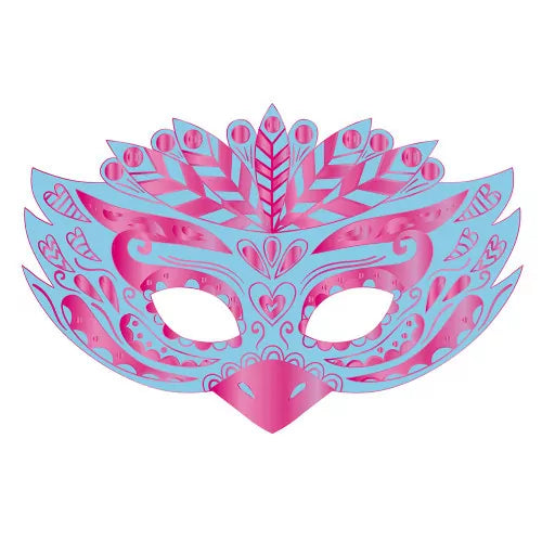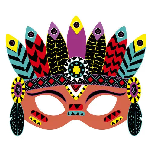 5 Masken zum Kratzen mit einem Holzwerkzeug, 5 Gummibänder und 1 Heft mit Mustern und Anleitungen.