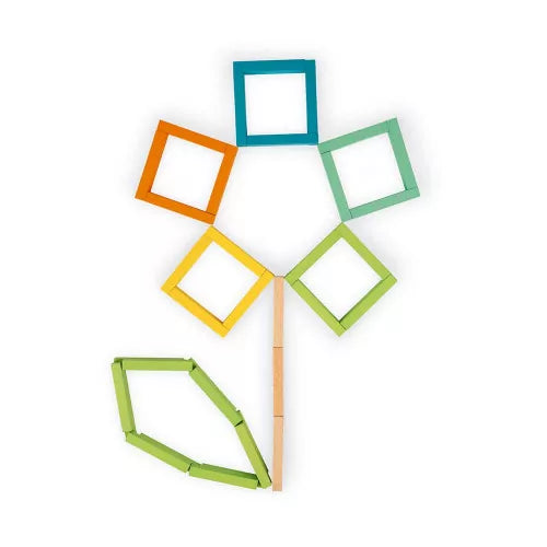 Dank dieser Trommel, die 60 Holzkonstruktionen in 6 verschiedenen Farben enthält, können die Konzentration und Motorik Ihrer Kinder gefördert werden. Es ermöglicht Kindern ab 4 Jahren, nach ihrer Fantasie die extremsten Gebäude zu erschaffen. Ob flach oder dreidimensional, es gibt zahlreiche Möglichkeiten für die genialsten Schöpfer: Türme, Häuser, Tiere usw. Im Lieferumfang sind 8 Modelle enthalten. Diese Aktivität ist ideal zur Entwicklung der Konzentration und der visuell-räumlichen Konstruktion. Die Holzklötze sind mit wasserbasierter Farbe bemalt. Die Stücke haben die Maße 8 x 1 x 2 cm. Die Trommelverpackung ist super praktisch, um nach dem Spiel alle Teile in Ordnung bringen zu können. Inhalt: Enthält 60 Bausteine, 4 doppelseitige Modellkarten. FSC®-zertifiziertes massives Buchenholz aus nachhaltig bewirtschafteten Wäldern.