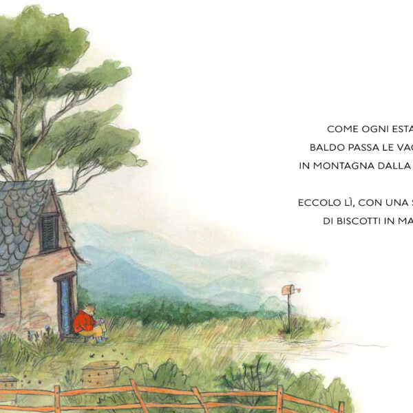 La nonna regala a Baldo una scatola da riempire di tesori. L’orsetto si incammina verso il bosco, che, si sa, è pieno di meraviglie: orme di lupo, raggi di sole… Ma niente di tutto ciò si può mettere in una scatola. Baldo sta per tornare a mani vuote, quando sente una vocina: «Cosa stai cercando, signor orsetto?».