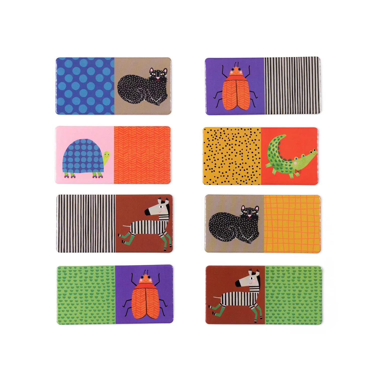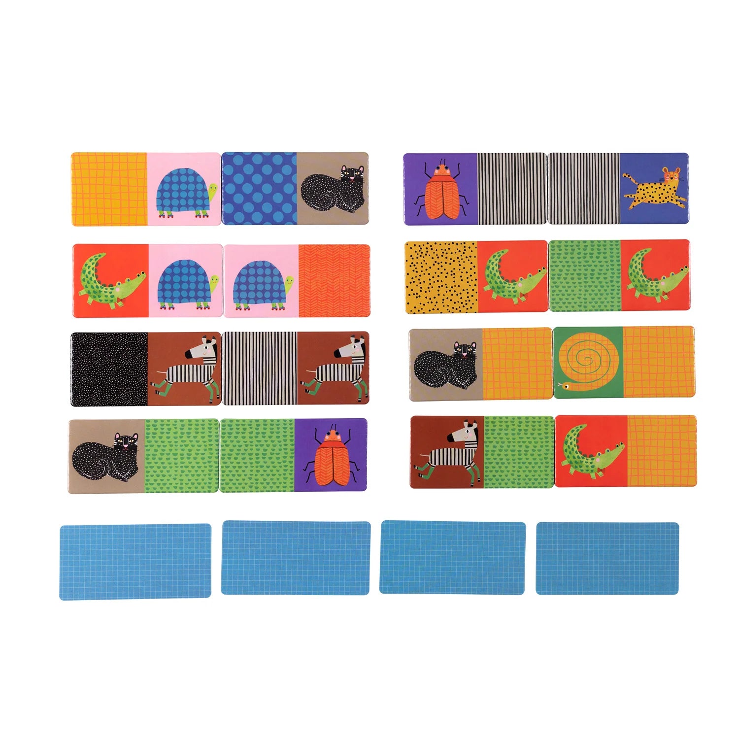 Moulin Roty – Motiv-Dominosteine: Viel Spaß und Lernen mit einem ganz besonderen Spiel! Die lustigen Tiere und Motive helfen jüngeren Kindern, Logik und Konzentration zu entwickeln. Spiel zum Beobachten, Auswählen und Zuordnen von Farben und Formen. Dank Domino dei-Motiven ist Spaß für die ganze Familie garantiert! Enthält 28 Karten.