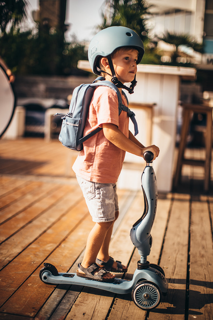 Verbessern Sie Ihren Stil, während Sie sich bewegen, mit dem 6-Liter-Rucksack Scoot&Ride! Es besteht aus recyceltem PET-Material und ist funktional und elegant. Es ist wasserabweisend und leicht zu reinigen und bietet dank reflektierender Aufdrucke und hoher Sichtbarkeit mehr Sicherheit. Außerdem ist es mit einem Magnetverschluss ausgestattet Dadurch kann es am Lenker von Rollern wie dem Highwaykick 3 und an einer Helmhalterung befestigt werden mit Magneten.