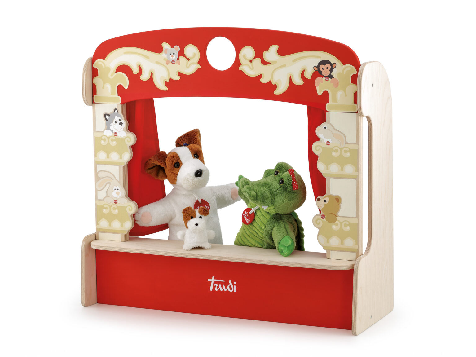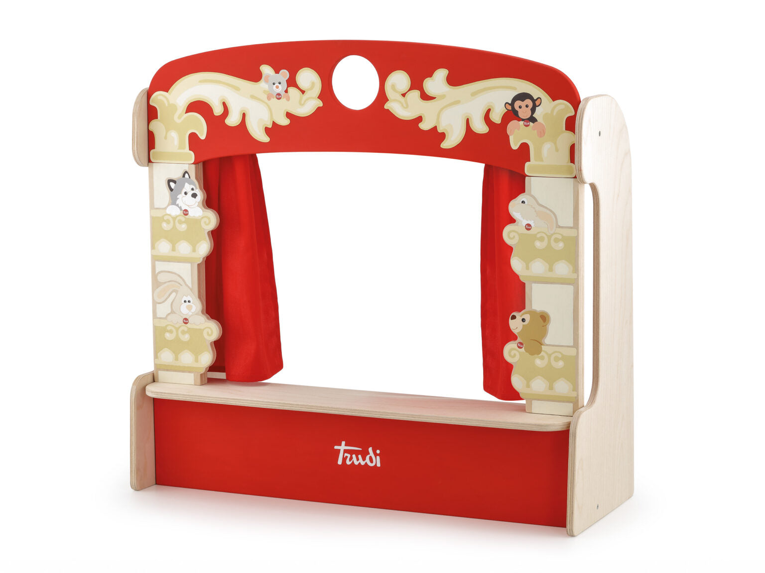 Il teatrino Trudi by Sevi offre infinite possibilità di gioco, grazie al suo vivace design e alle coloratissime marionette Trudi. Realizzato in legno, è sicuro e resistente, conforme alle normative europee. Il sipario e i dettagli lo rendono unico e facilmente riponibile, occupando poco spazio. Scopri il piacere del teatro con Trudi by Sevi!