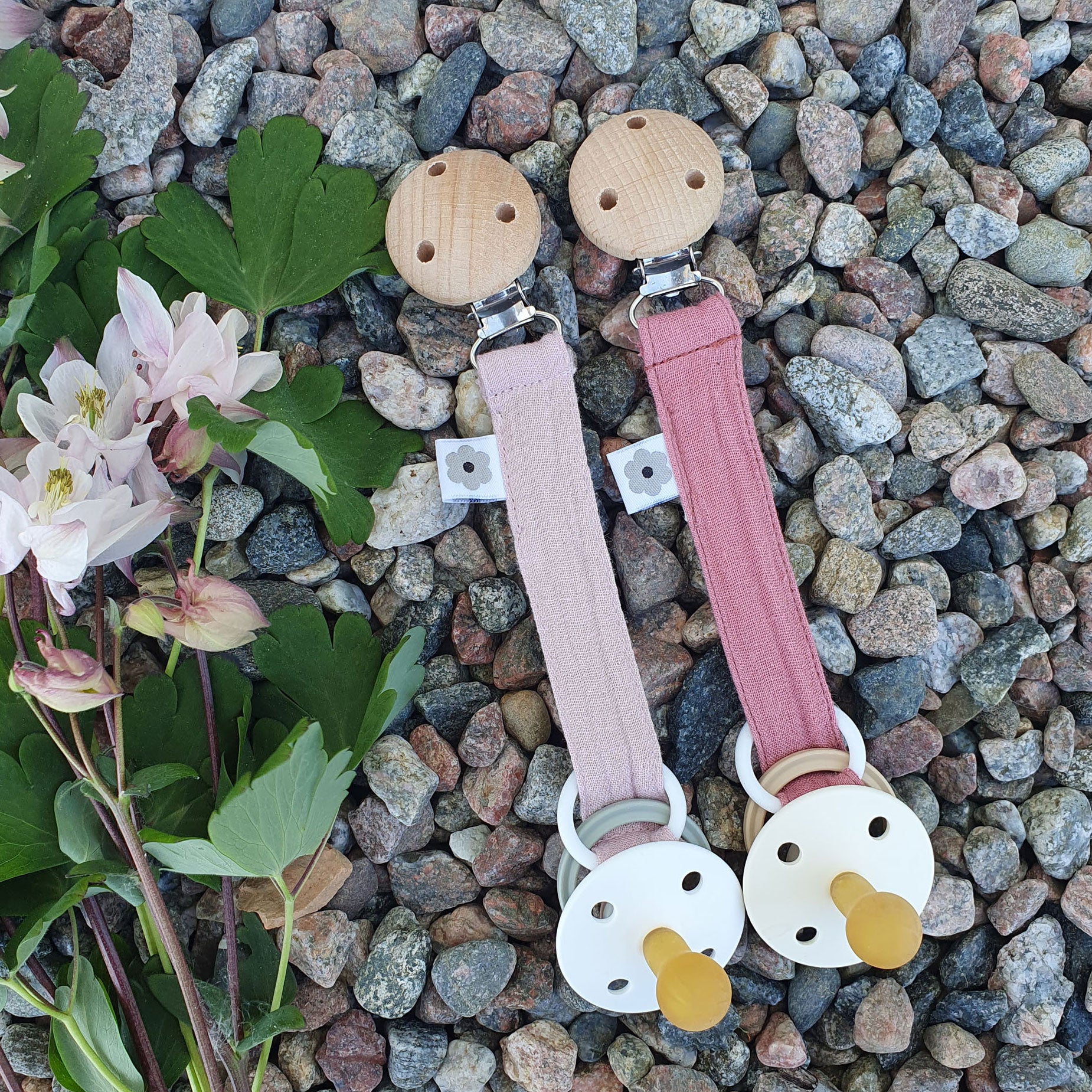 Le clip per ciuccio di Summerville sono realizzate con materiali durevoli ed ecologici. Il cotone del tessuto di mussola è organico e il legno della fibbia è di faggio certificato FSC. La fibbia in acciaio inossidabile è in acciaio nichel free e infine un anello è in silicone.