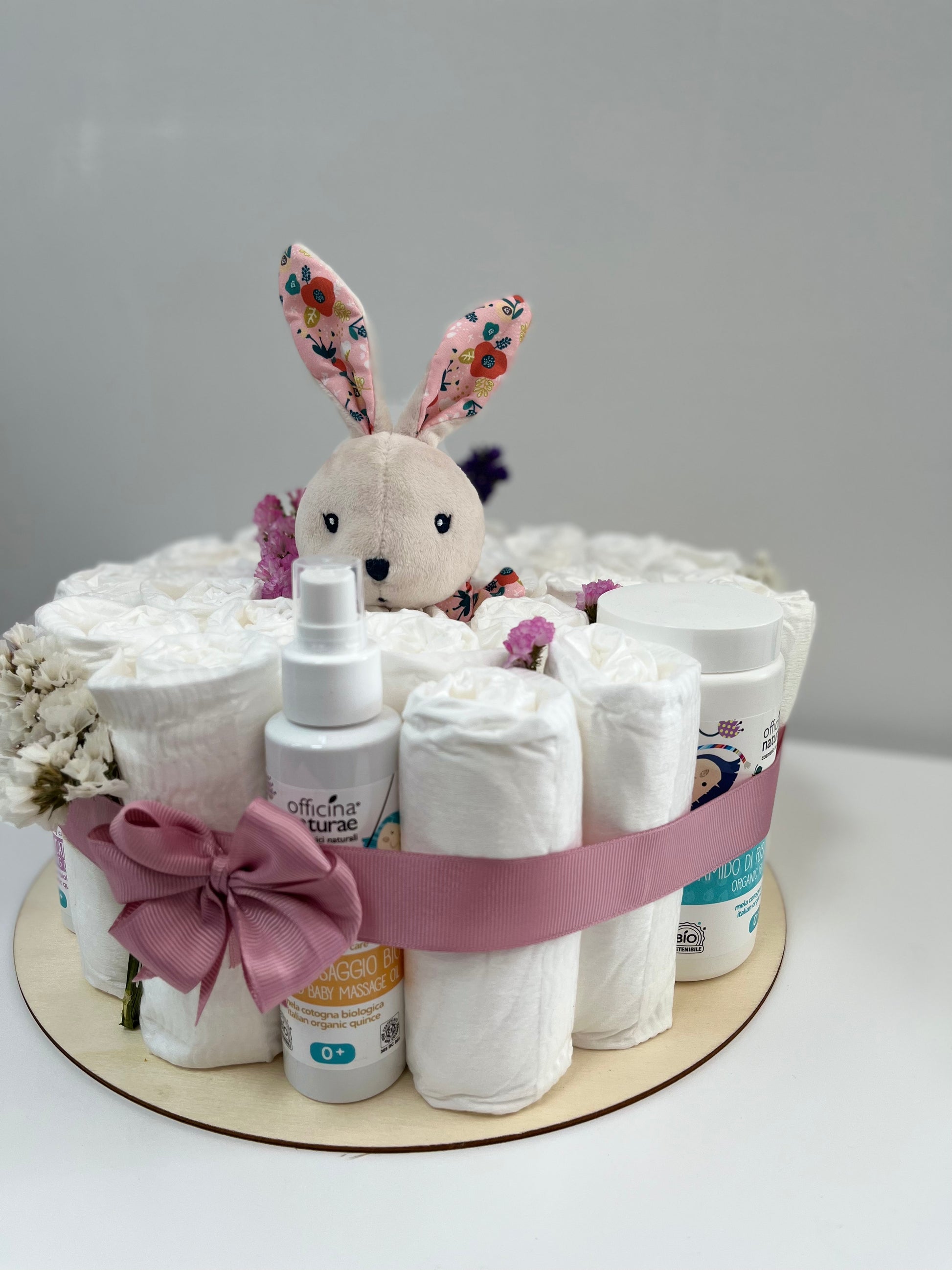 Eine ganz besondere Windeltorte , um die Ankunft oder den Geburtstag jedes Babys zu feiern, aber nicht nur!