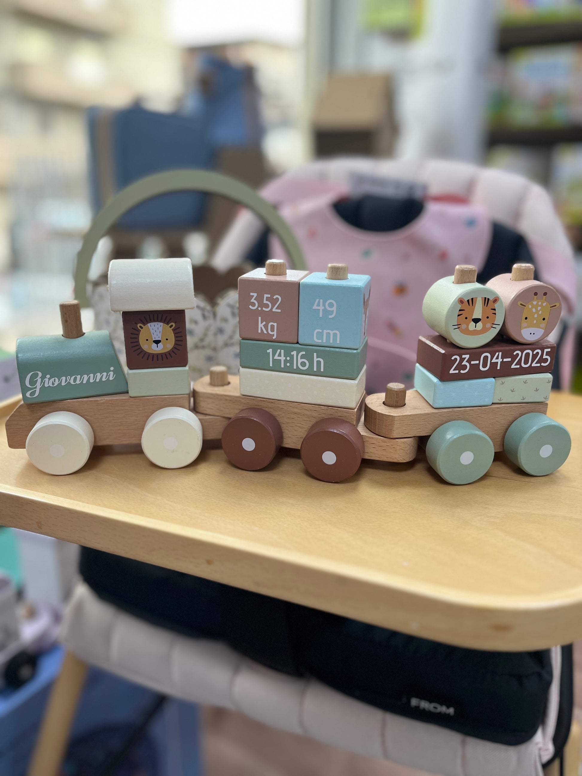 Il trenino in legno personalizzato è la sorpresa perfetta: bella da vedere, pensata con amore e… completamente personalizzabile!