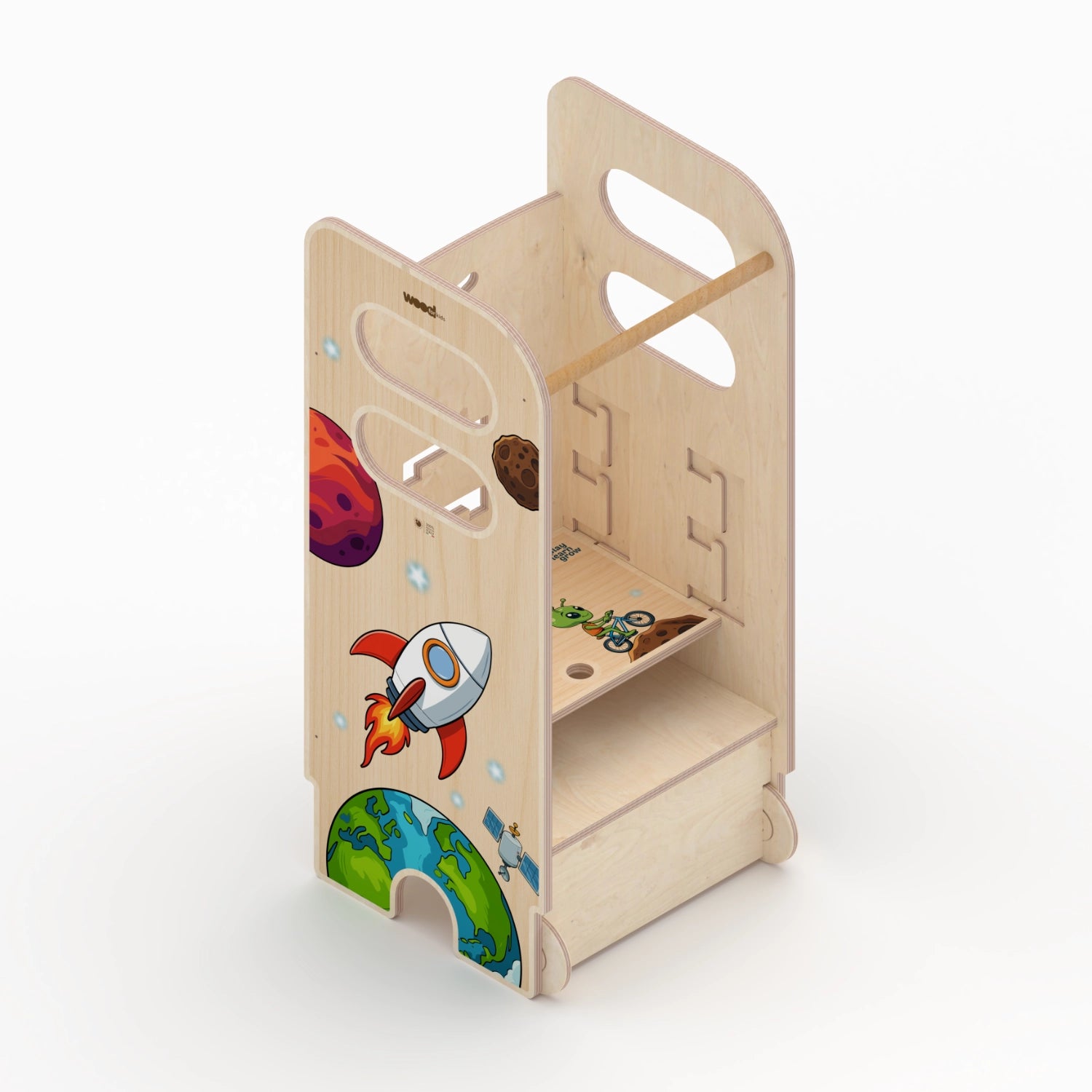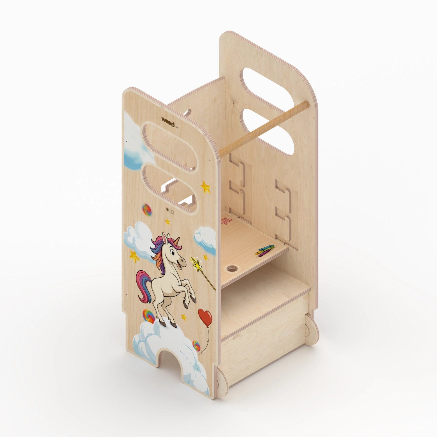 Erreichen Sie neue Höhen mit Tuco Toys – Montessori Tower! Dank der drei einstellbaren Höhen kann Ihr Kind Spaß haben und gleichzeitig neue Fähigkeiten entwickeln, indem es neben Ihnen ist oder unabhängig ist. Dieser aus umweltfreundlichem Holz gefertigte Turm ist solide, stabil und sicher und eignet sich perfekt für die Erkundung verschiedener Höhen. Man kann das Gemüse gemeinsam waschen und schneiden, alles in den Topf geben, Pizza und Kekse kneten. Bis zum Alter von sechs Jahren können Sie Ihre Hände, Ihr Gesicht und Ihre Zähne völlig selbstständig waschen. 100 % Made in Italy und handwerkliches Produkt, für eine Zukunft ohne Emissionen.