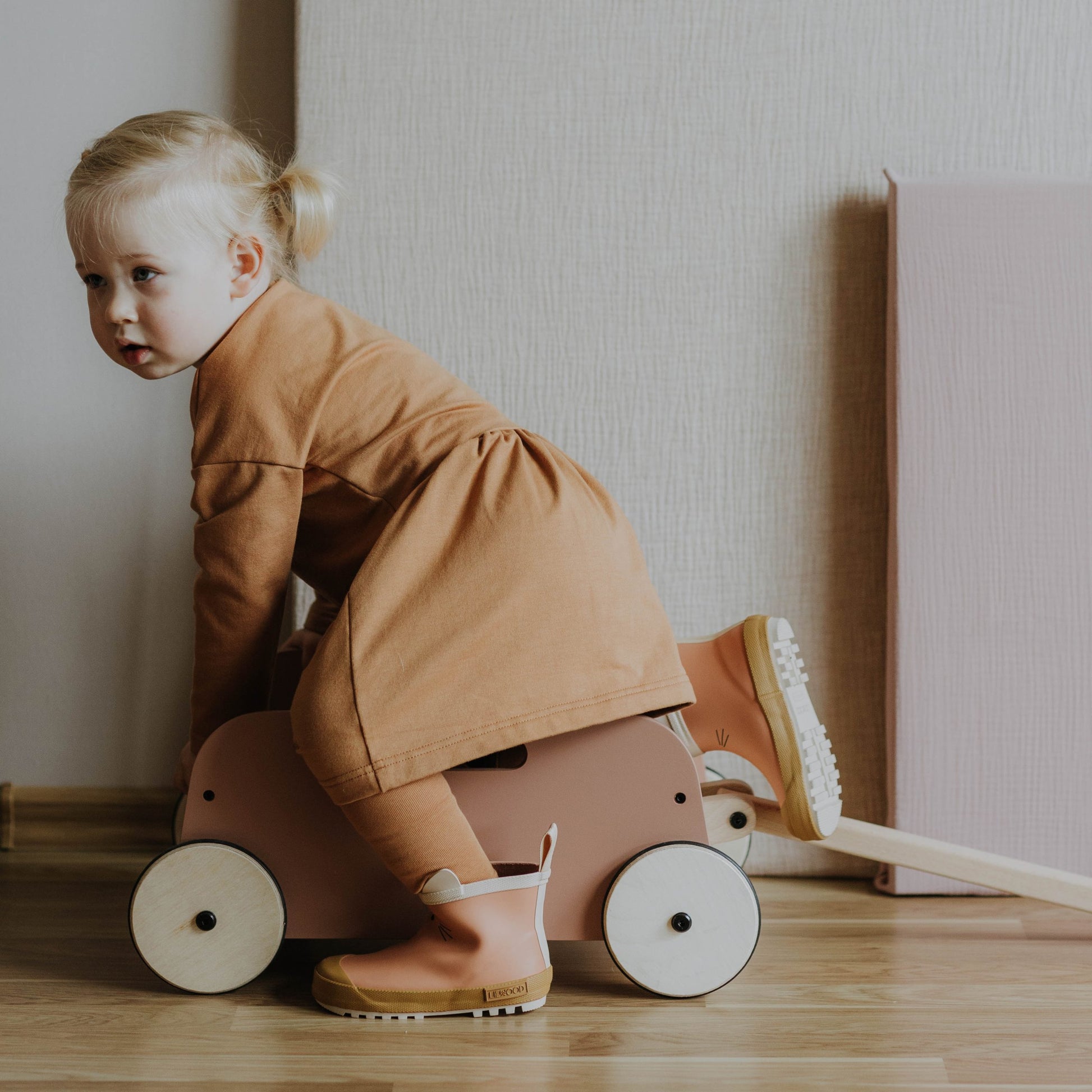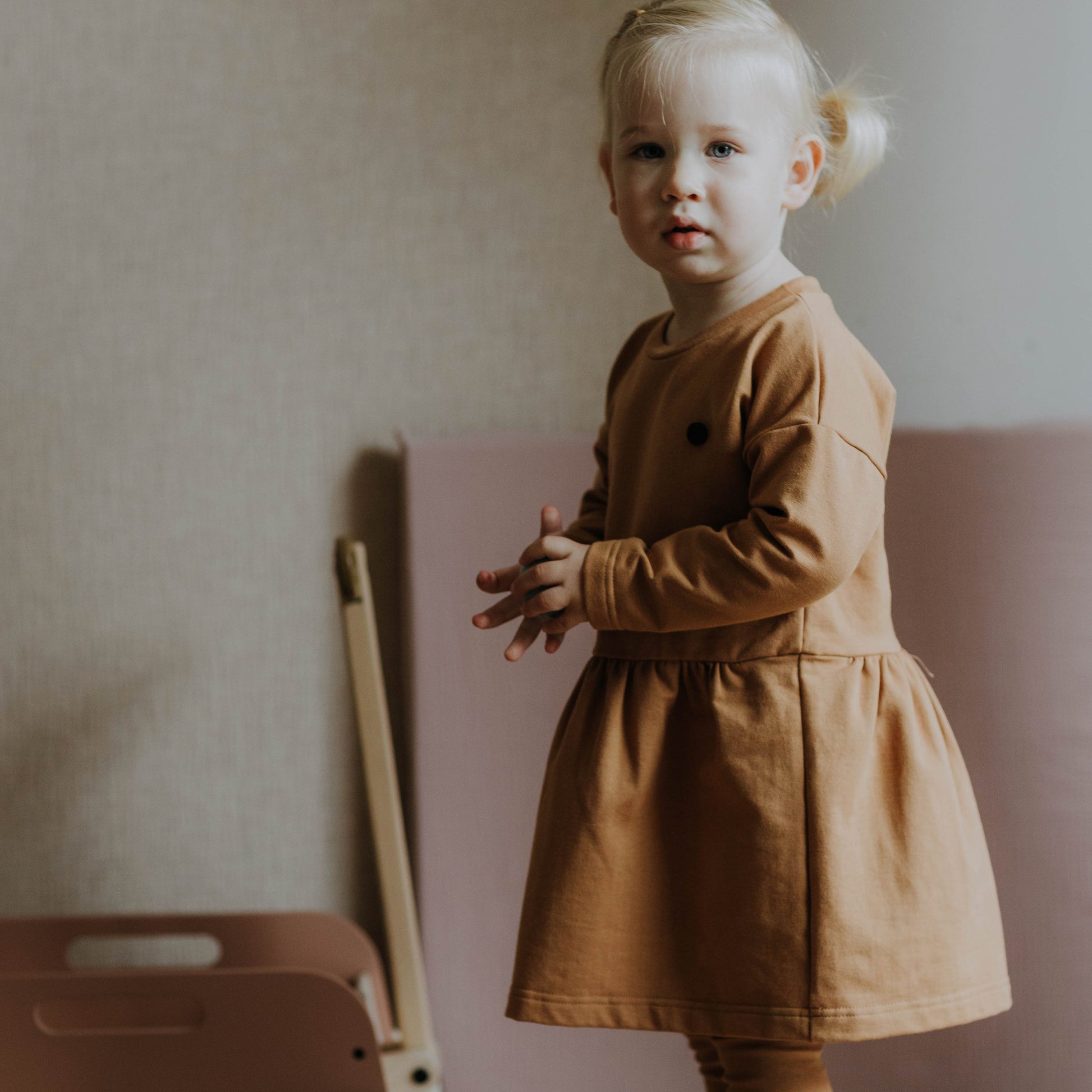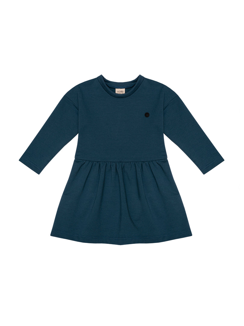 Abito comodo ed elegante per bambina. Maniche a 3/4, scollo tondo. Materiale in felpa con elastan per una migliore vestibilità e comfort.
