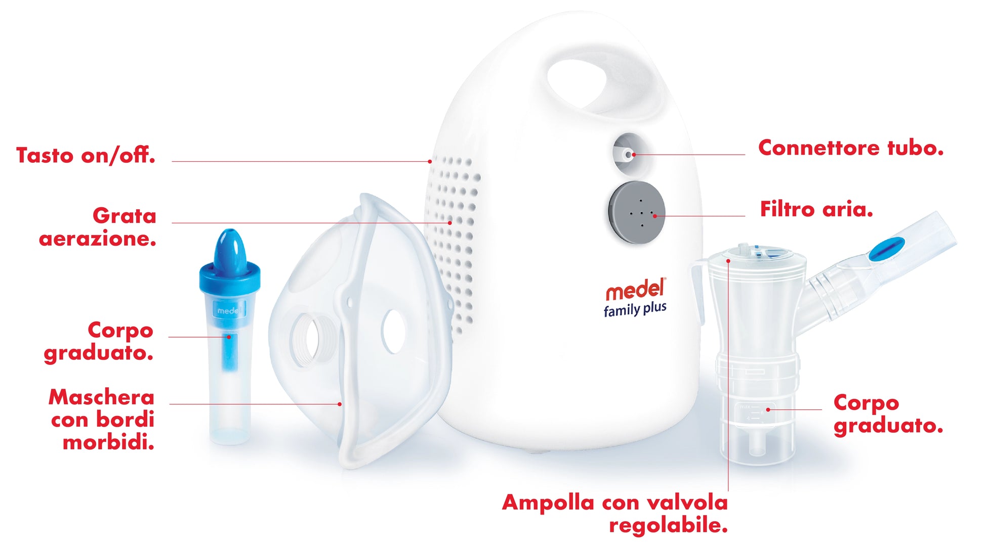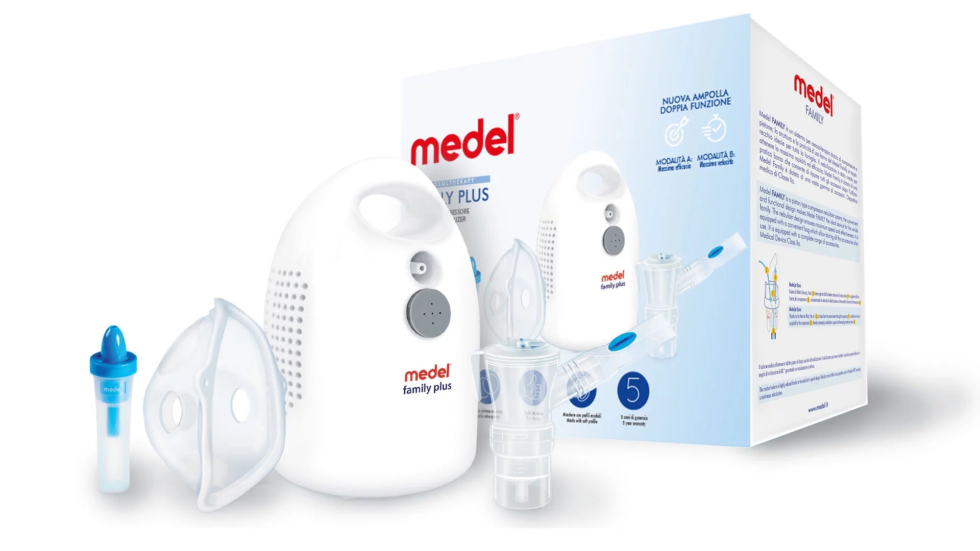 Efficace e conveniente, il sistema per aerosolterapia Medel FAMILY PLUS è ideale per l'uso a casa. Il suo compressore a pistone ultra compatto e silenzioso è facile da usare. Grazie al nebulizzatore Medeljet Plus con doppio sistema valvolare, garantisce una maggiore efficacia del trattamento e un minor spreco di farmaco.