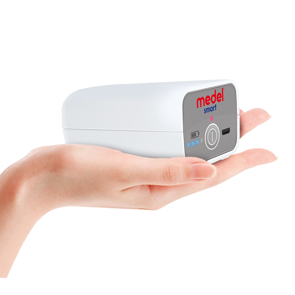 Medel SMART è un sistema per aerosolterapia a microcompressore ultra-compatto, estremamente silenzioso e facile da usare. L' apparecchio sta comodamente sul palmo di una mano, pesa soltanto 200 g ed è facilissimo da trasportare, particolarmente indicato in viaggio.