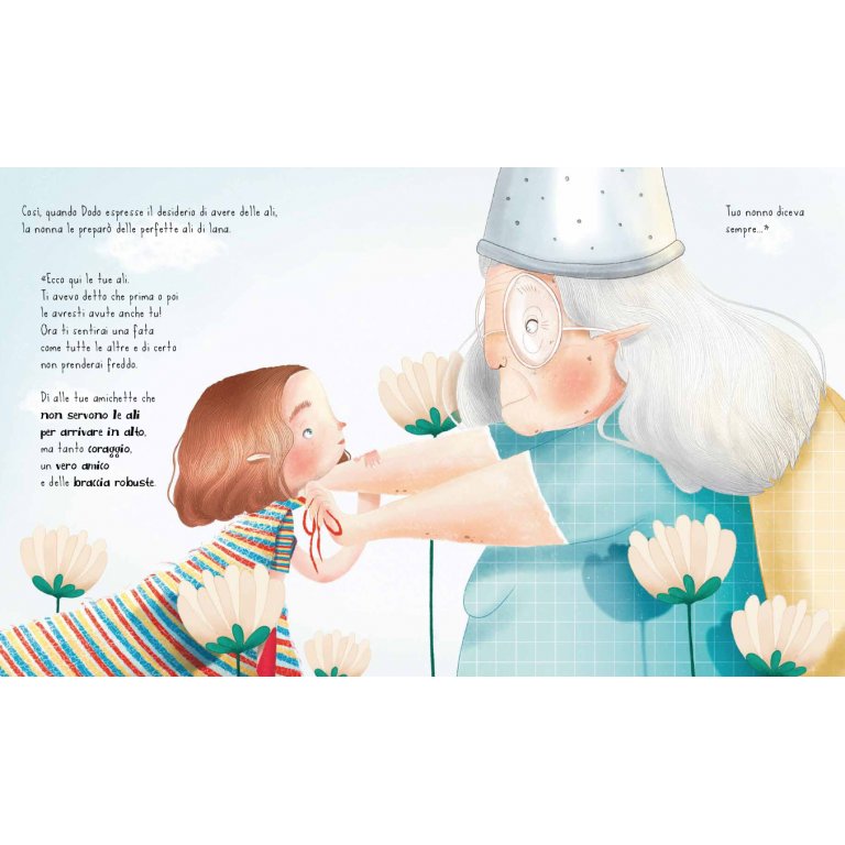Dodo è una fata nata senza ali, ma questo non le impedirà certo di spiccare il volo. Perché, come dice la nonna, basta il coraggio, un buon amico e delle braccia forti per arrivare in alto.