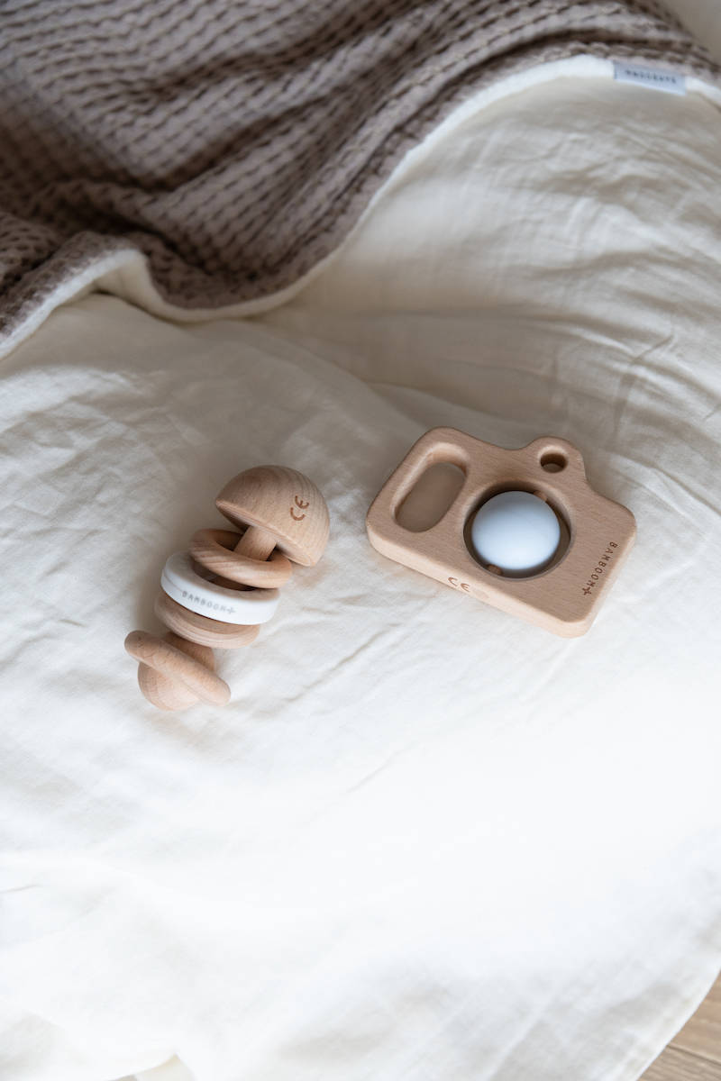 Con il sonaglio in legno e silicone permetti al tuo bimbo di sviluppare tutti i sensi in modo divertente e creativo. Grazie alla combinazione di legno naturale e silicone, il sonaglio supporta la coordinazione e l'educazione motoria del tuo bimbo. Scopri insieme al tuo bimbo come la forza dei suoi movimenti può influenzare l'intensità del suono. Con il elegante design adatto per bimbi e bimbe, il sonaglio misura 10x4cm ed è il regalo originale perfetto per il tuo piccolo.