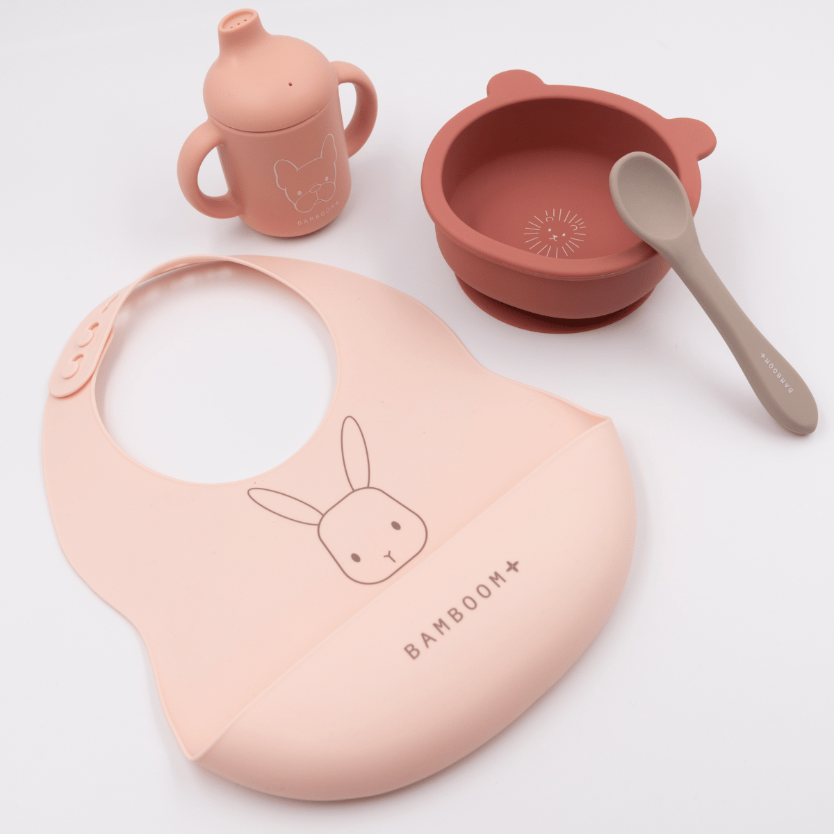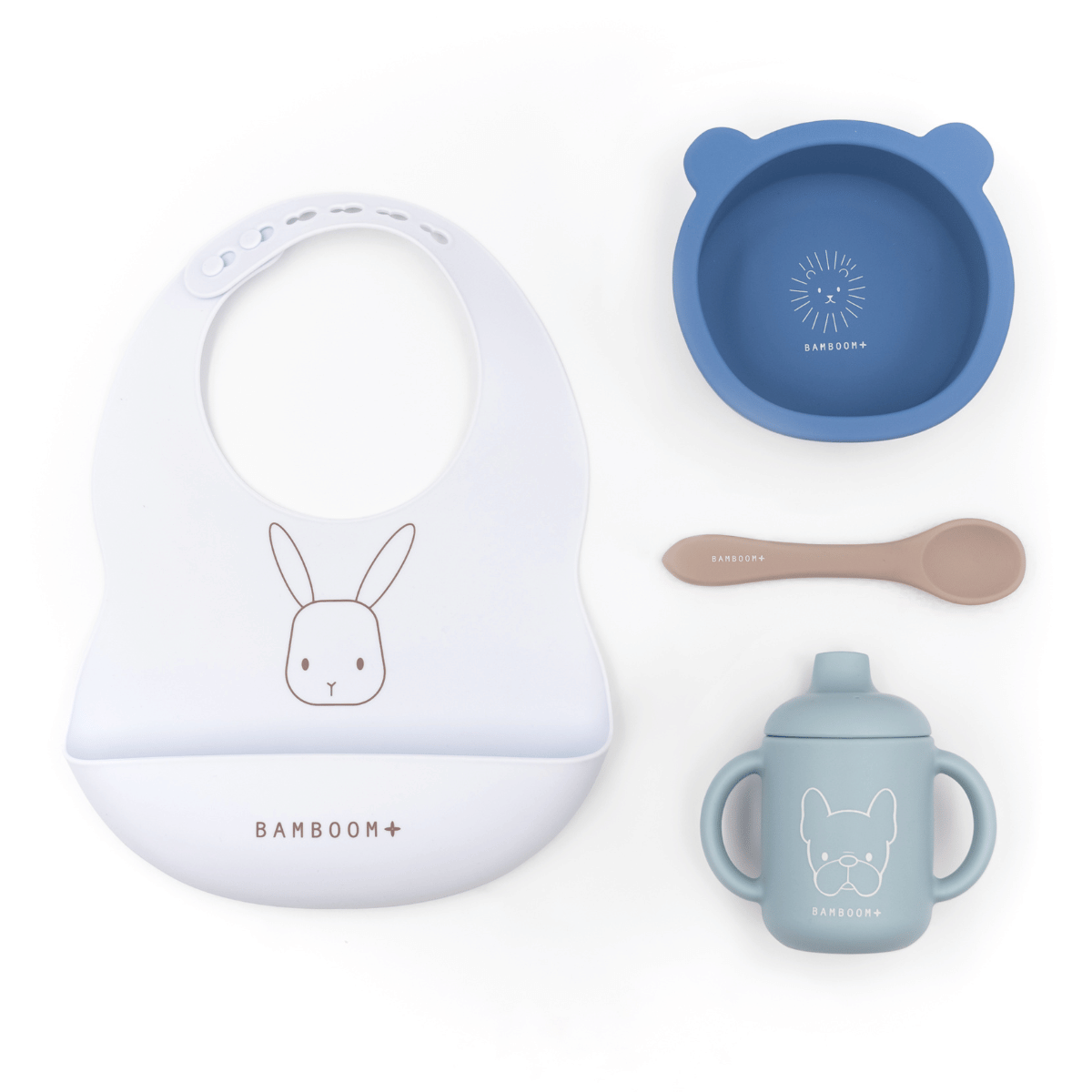 Cosa c'è di meglio di un Bamboom+ Set Pappa Baby in Silicone che assicuri il benessere del tuo bambino? Bello a vedersi, morbido al tatto, realizzato con silicone antibatterico BPA FREE, resistente al microonde e lavastoviglie. Include bavaglino, scodella con ventosa, cucchiaio, bicchiere con beccuccio antigoccia. Un'idea regalo da ricordare!
