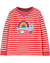Maglietta a righe bianche e rosse con collo elasticizzato. Realizzata in cotone 100% organico certificato GOTS. Nel pieno della filosofia dell'ecosostenibilità i disegni e i tocchi di colore vengono applicati o ricamati in modo tale da garantire non solo una vita lunga al capo, ma anche il riutilizzo dei filati utilizzati per rigenerarne nuovi.