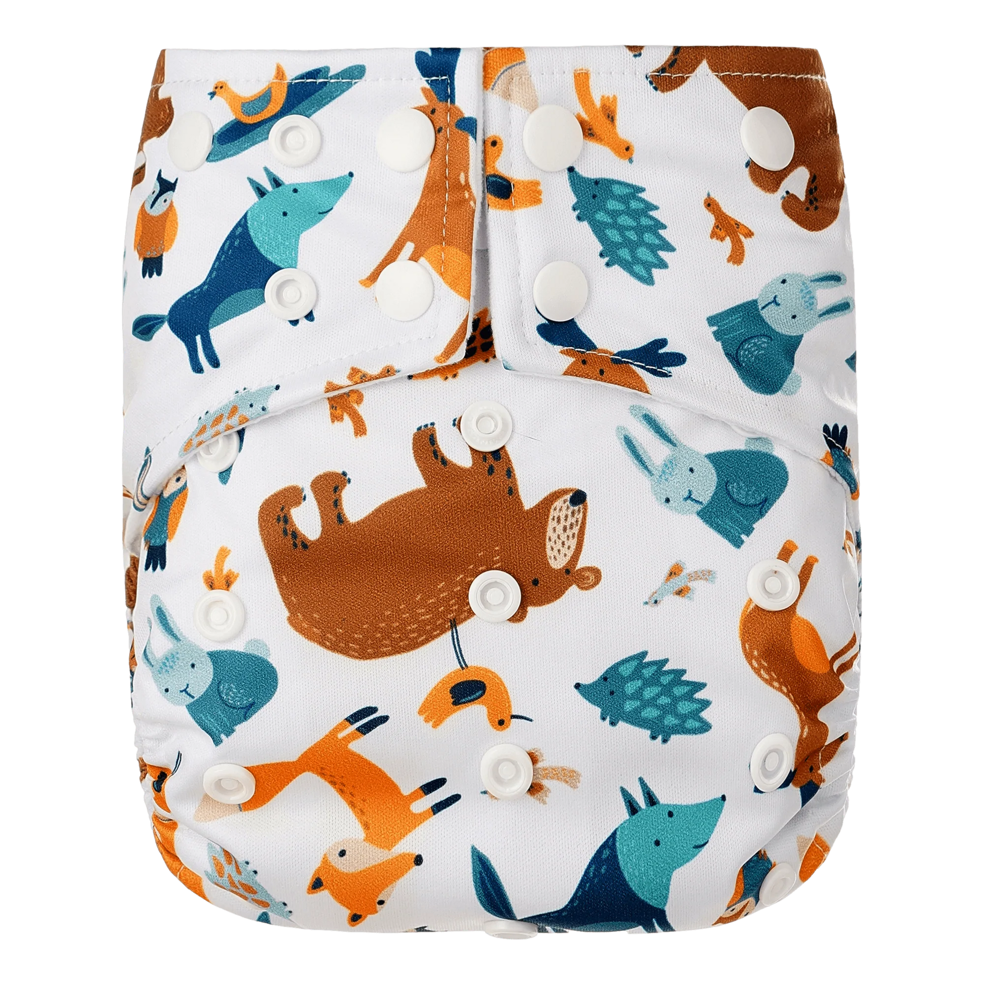 I copri pannolino sono disponibili in diverse stampe divertenti e allegre e sono realizzati in tessuto impermeabile e chiusure elastiche intorno alle gambe e al busto.