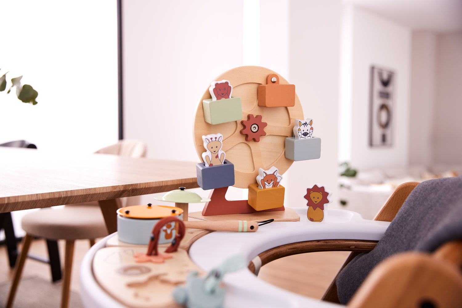 Divertiti con il tuo bambino al luna park con il set Hauck - Play Ferris Weel per Vassoio Play! Con una grande ruota piena di animali e la possibilità di fare presa e puntamento precisi, questo set è facile da fissare al seggiolone e garantisce ore di divertimento per il tuo bambino.