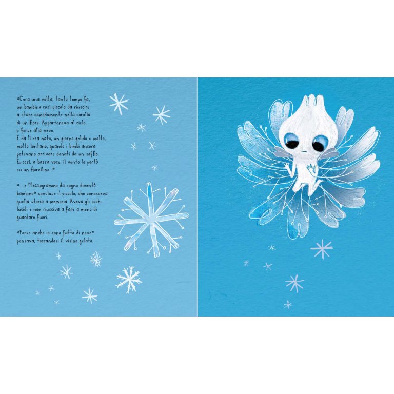 C’era una volta, tanto tempo fa, un bambino talmente piccolo da riuscire a stare comodamente all’interno della corolla di un fiore. Bianca lo accudiva con amore dal lontano giorno in cui l’aveva trovato, minuscolo e solo, durante una copiosa nevicata che aveva coperto tutto il villaggio di Bijankik. Il piccino, che aveva la pelle e i capelli del colore del latte, resisteva al gelo aggrappato a un bucaneve, e piangeva forte. Così, la giovane lo aveva accolto come se fosse un figlio, aprendogli la casa e, soprattutto, il suo cuore.