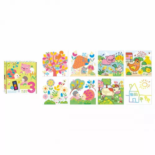 Che adorabili animali da decorare e colorare! Questo set multiattività, rivolto ai bambini dai 3 anni in su, permette di realizzare 4 quadretti con inchiostro da stendere con le dita e 1 timbro, e 2 quadretti fronte-retro da colorare con il pennarello ad acqua incluso. Il pennarello ad acqua è magico: i colori scompaiono quando si asciugano! Per colorare un quadretto con il pennarello magico sono necessari circa 30 minuti, per colorare i quadretti con inchiostro è necessaria circa 1 ora e mezza. Queste attività sono perfette per esercitare le abilità fino-motorie dei più piccoli, che saranno orgogliosi delle loro creazioni. Questo set artistico fa parte della collezione My Arts & Crafts, una linea di attività creative per i più piccoli con simpatici animali dai colori pastello.