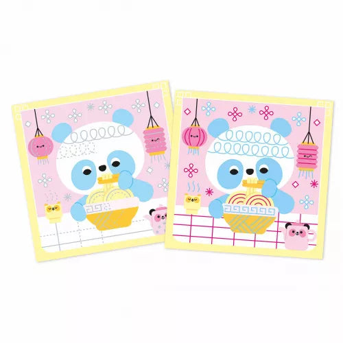 Come aiutare i bambini a sviluppare le abilità fino-motorie? Le attività creative sono un modo ideale per esercitare la manualità in modo divertente! E se sono decorative è ancora meglio! Questo set, rivolto ai bambini dai 5 anni in su, contiene 4 quadretti cancellabili fronte-retro illustrati con simpatici animali. Grazie ai pennarelli cancellabili (uno blu e uno rosa) e alle forme presenti sui quadretti, i bambini si eserciteranno a disegnare anelli, onde e forme simmetriche. Per completare i 4 quadretti è necessaria circa 1 ora e mezza; tuttavia, l'attività può essere ripetuta all'infinito perché i quadretti sono cancellabili! Questo set artistico fa parte della collezione My Arts & Crafts, una linea di attività creative per i più piccoli con simpatici animali dai colori pastello.