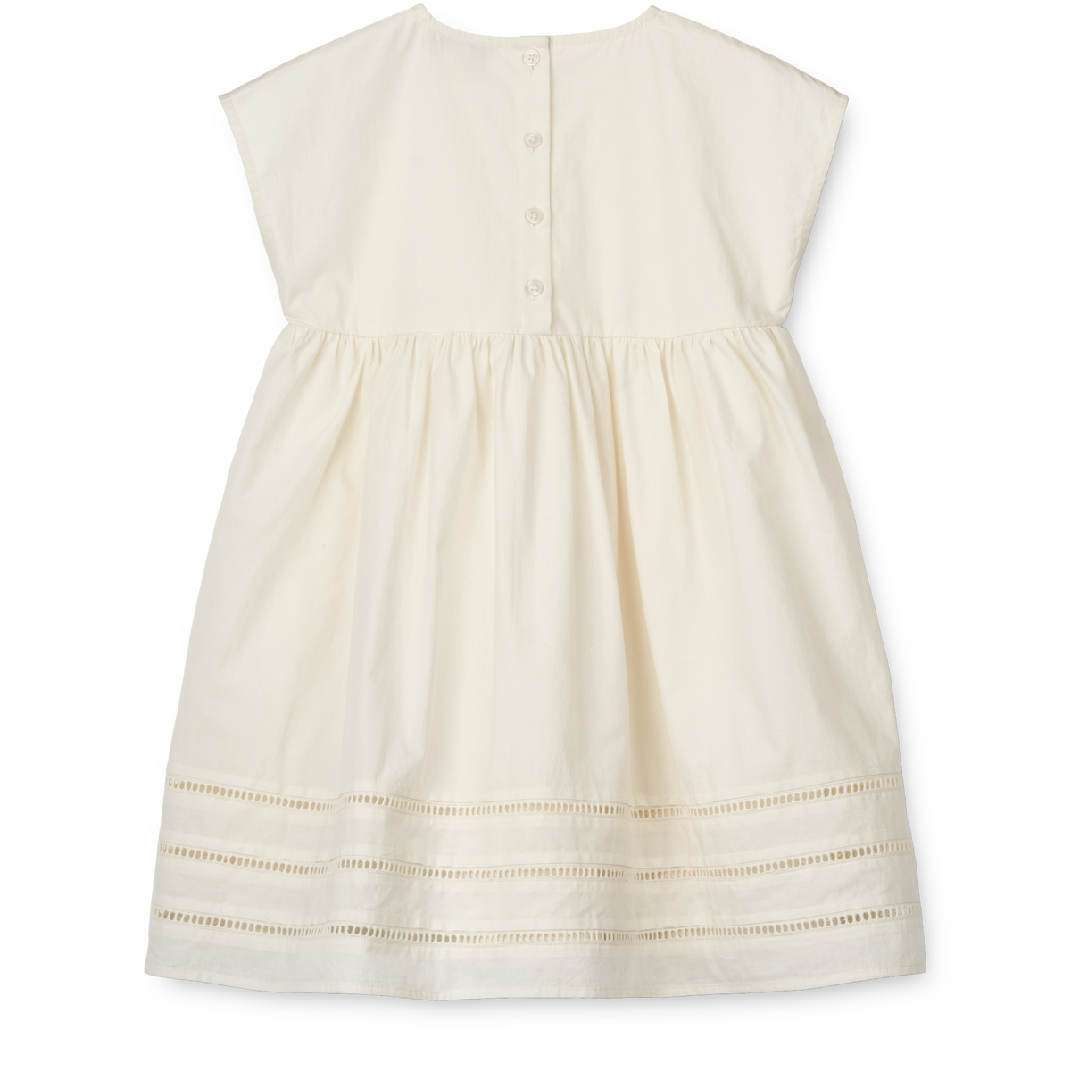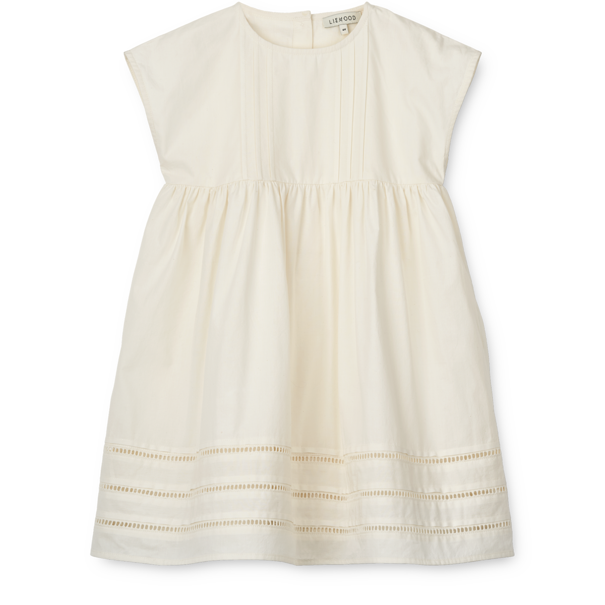 Prova il comfort e la traspirabilità dell'abito crema Liewood con il suo materiale in cotone biologico certificato GOTS. Comodo nella gonna svasata, nelle intricate pieghe sul petto e nei delicati dettagli in pizzo lungo l'orlo. Vesti alla moda chic e e in modo responsabile per l'ambiente. Amplia il tuo guardaroba estivo con opzioni consapevoli ed eleganti che adorerai per le stagioni a venire!