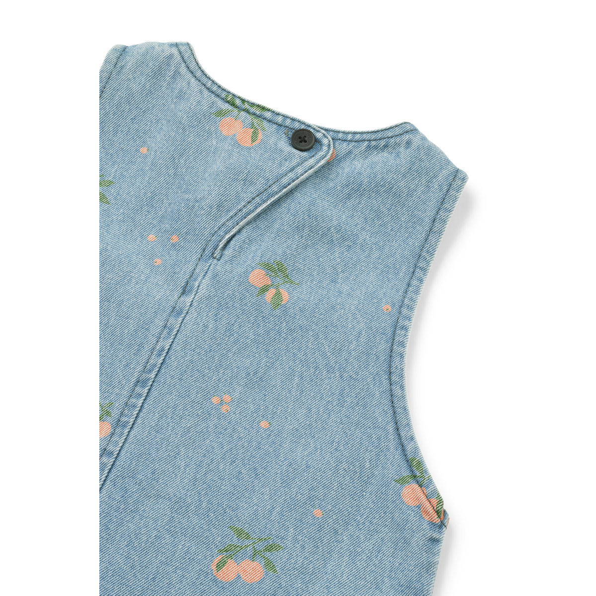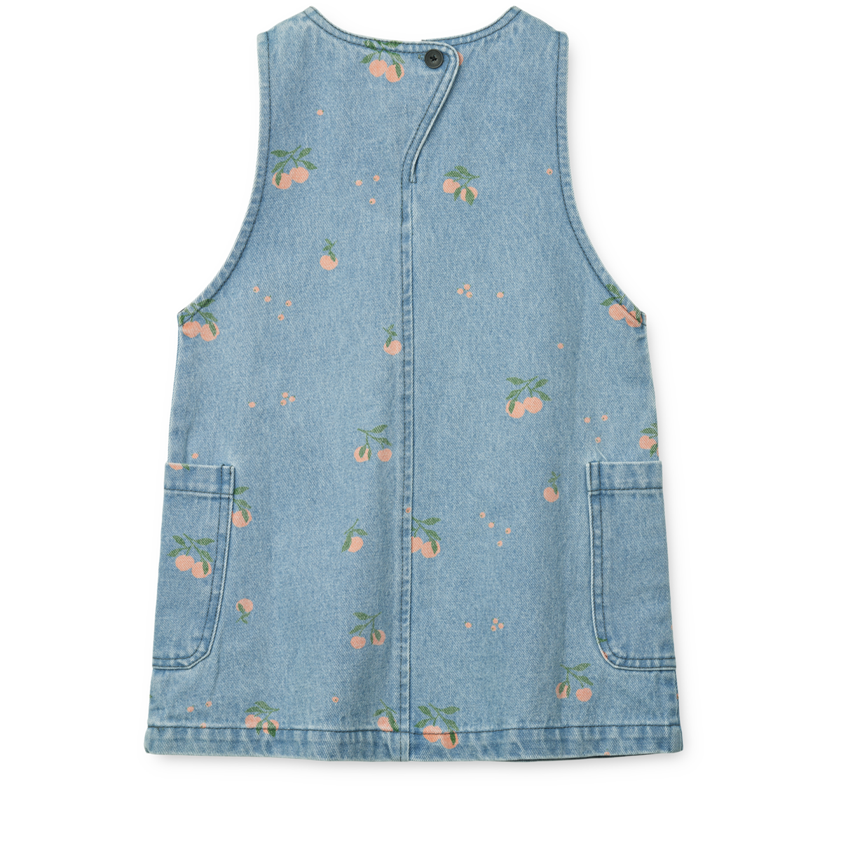 Questo abito scamiciato in denim con lavaggio stone chiaro è perfetto per un look casual ma alla moda. Realizzato in 100% cotone organico spesso, garantisce un comfort ottimale. Le tasche ai lati lo rendono ancora più pratico. La vestibilità comoda e la stampa pesca lo rendono un capo divertente e alla moda.