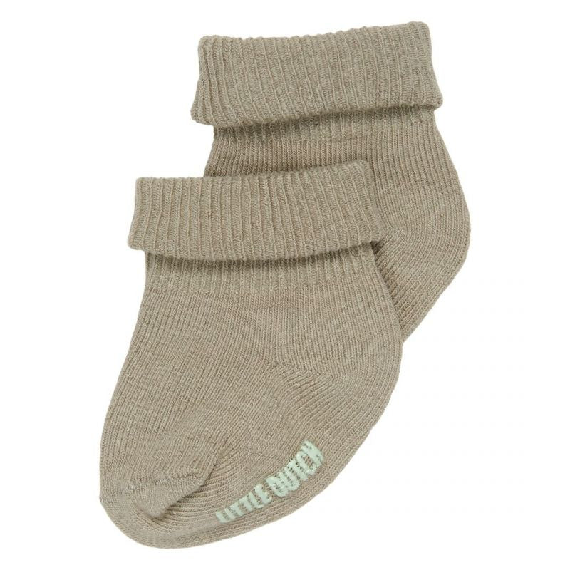 Calzini a coste. Decorate con la scritta in rilievo sulla suola di Little Dutch e con colori neutri, abbinabili con tutto. Realizzate in cotone 100% organico, privo di sostanze chimiche.