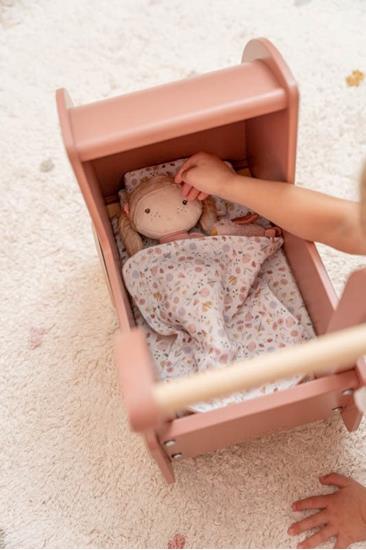 Questa carrozzina per bambole di ispirazione retrò è realizzata in legno robusto. Il cuscino, la coperta e il lenzuolo con angoli hanno un adorabile design Fiori e Farfalle che rende anche questa carrozzina per bambole un bellissimo oggetto decorativo per la stanza del bambino. Il tuo cuore si scioglierà quando vedrai il tuo piccolo fantasticare su un'avventura e spingere la carrozzina con bambole e peluche. Ottimo per sviluppare l'equilibrio, la coordinazione e le capacità motorie. E grazie alle strisce di gomma attorno alle ruote, non dovrai preoccuparti del pavimento quando il tuo bambino cammina per la stanza. Combinalo con la bambola Anna che indossa gli stessi fiori e farfalle sulla gonna.