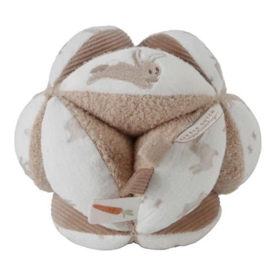 Prova solo ad afferrare la palla! Questa palla avvincente con la sua forma interessante rappresenta una grande sfida per il tuo piccolo. Le superfici con diverse texture e motivi invitano ad afferrare ed esplorare. La palla è facile da afferrare per le manine dei più piccoli e il suono allegro della campanella premia lo sforzo del tuo bambino. Nell'arredamento di Baby Bunny, le etichette facili da afferrare stimoleranno i sensi, svilupperanno la presa e manterranno il tuo bambino molto impegnato nel box.