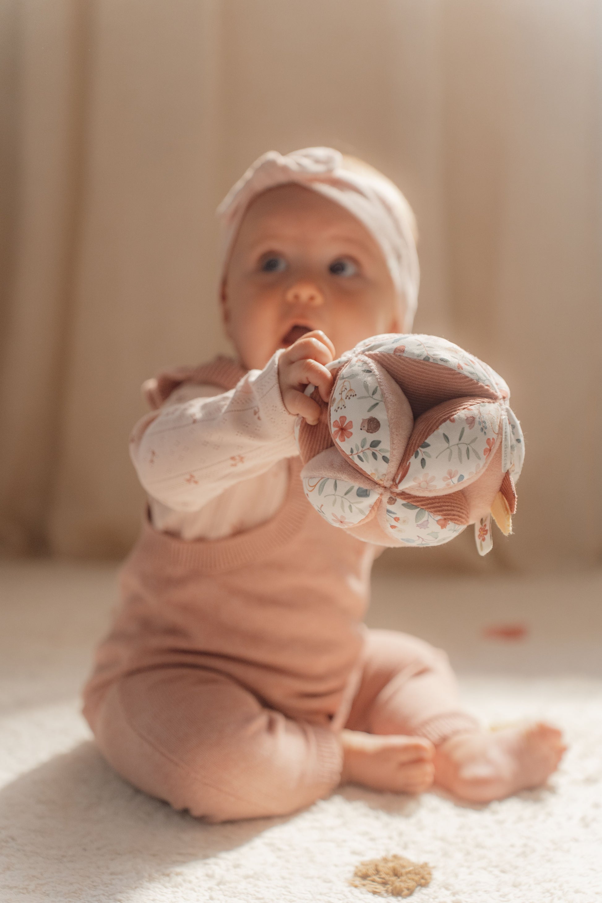 Prova solo ad afferrare la palla! Questa palla avvincente con la sua forma interessante rappresenta una grande sfida per il tuo piccolo. Le superfici con diverse texture e motivi invitano ad afferrare ed esplorare. La palla è facile da afferrare per le manine dei più piccoli e il suono allegro della campanella premia lo sforzo del tuo bambino. Nell'arredamento di Fairy Garden, le etichette facili da afferrare stimoleranno i sensi, svilupperanno la presa e manterranno il tuo bambino molto impegnato nel box.