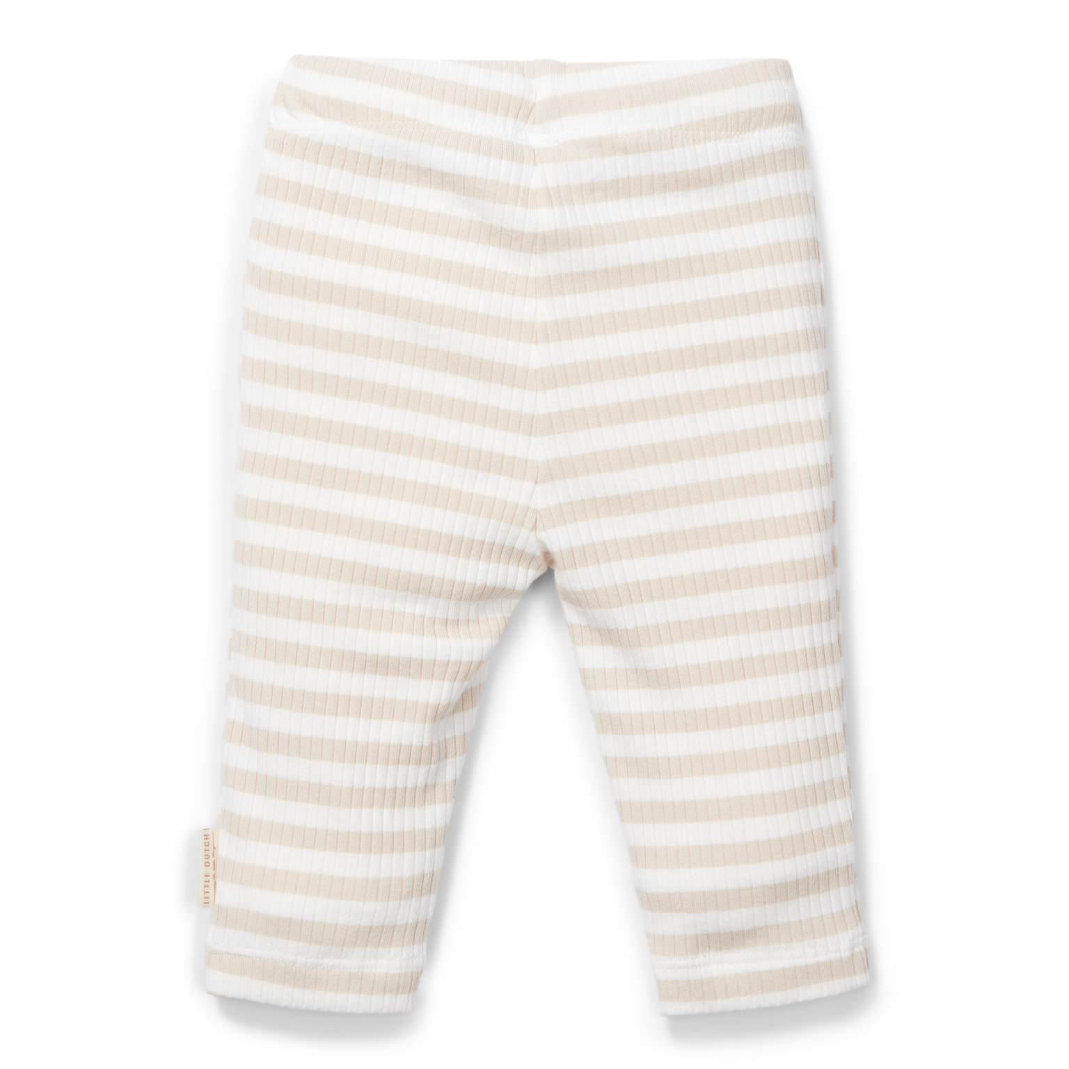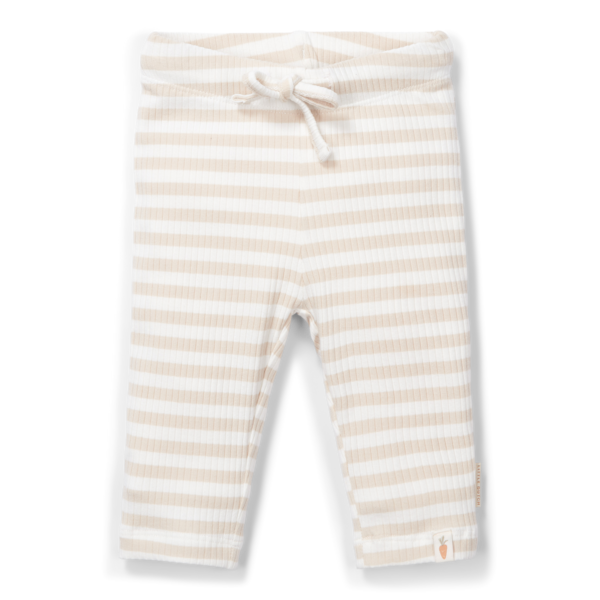 Affronta nuove avventure con questi pantaloni a righe sabbia e bianche di Little Dutch! I polsini nella parte inferiore delle gambe e la cintura sono elastici, quindi i pantaloni possono essere indossati e tolti facilmente. Etichette carine con logo e icona della carota.