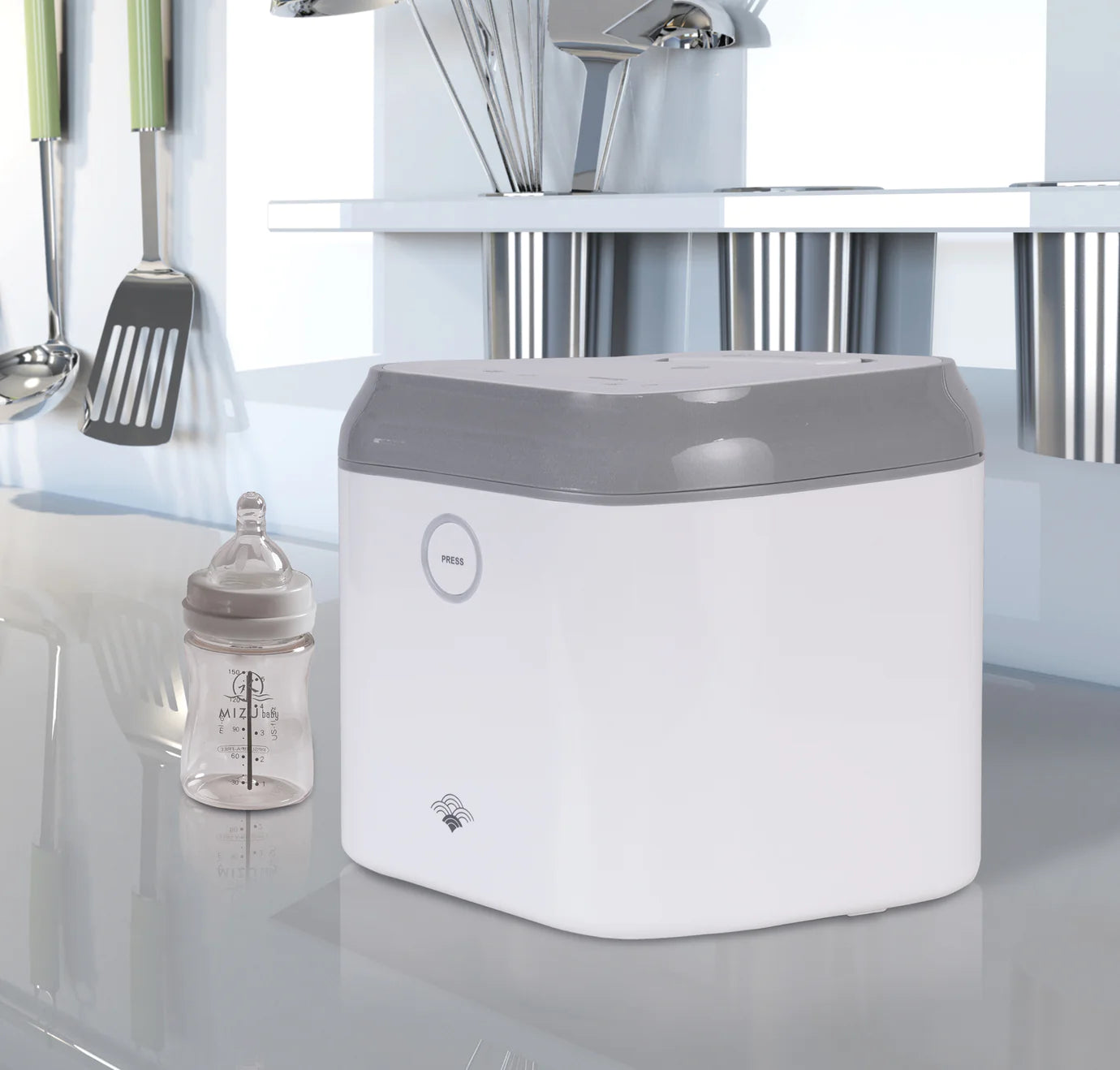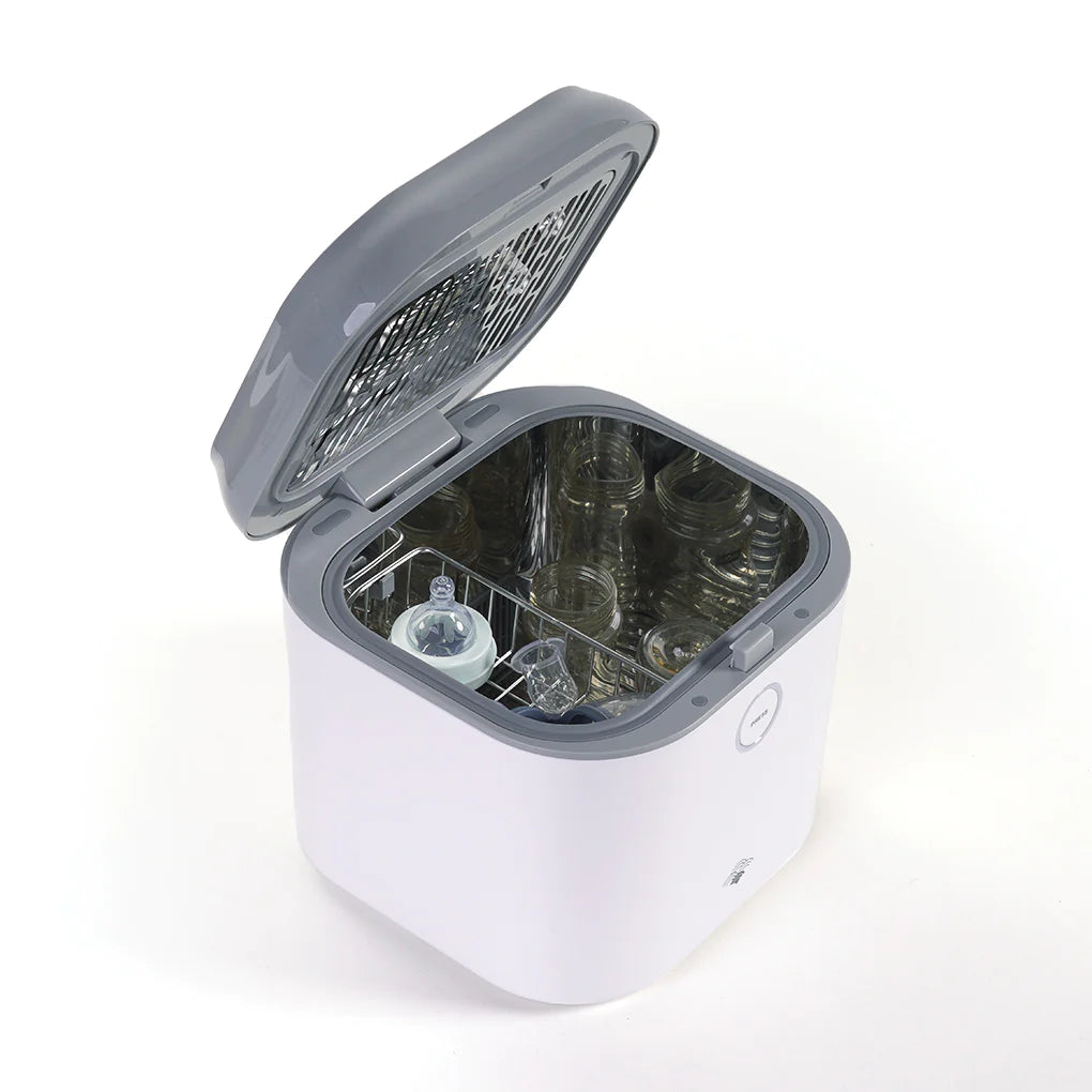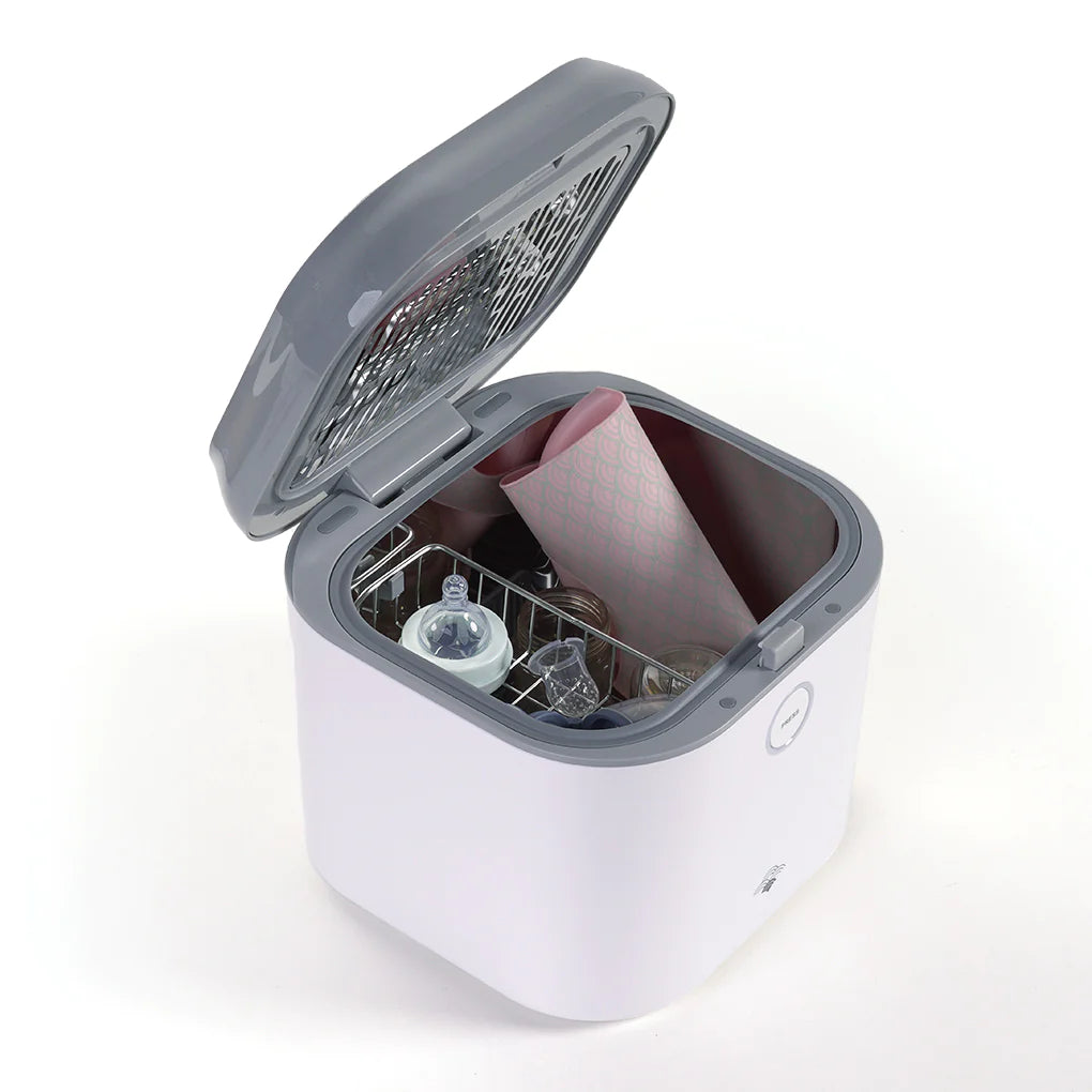 MIZU - STERILIZZATORE è un dispositivo pratico e sicuro, dotato di tecnologia AIRI - STERILIZZATORE UV 3 IN 1. Grazie a due lampade UV, sterilizza senza l'uso di acqua o vapore biberon, ciucci, catenelle portaciuccio, giochi, e altro ancora senza asciugatura. La sterilizzazione avviene in pochi minuti, garantendo un'altissima qualità di igiene.