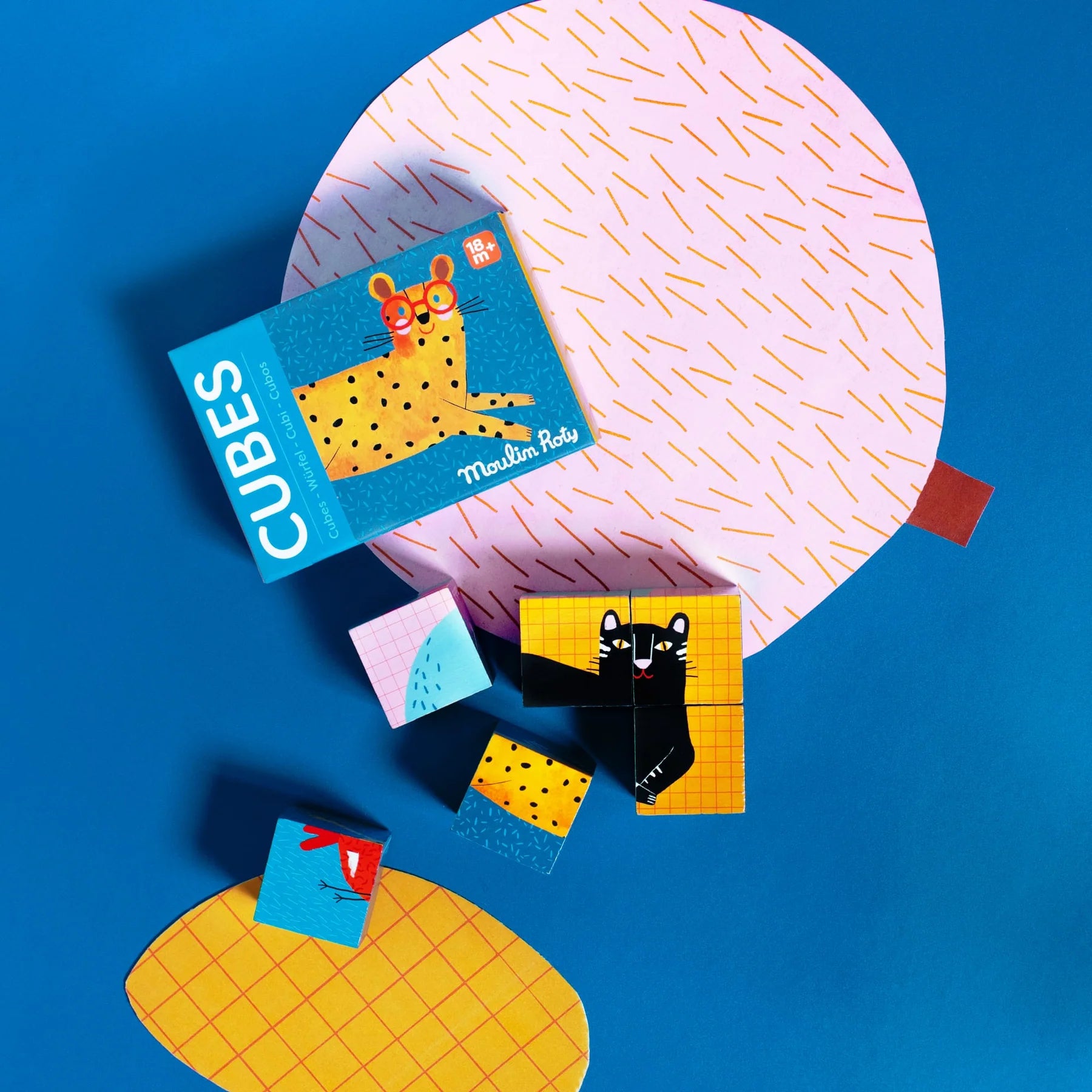 Moulin Roty - Puzzle 6 cubi in legno Animali