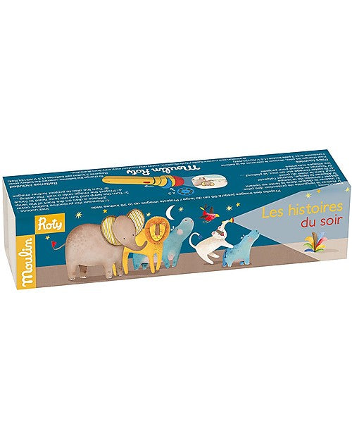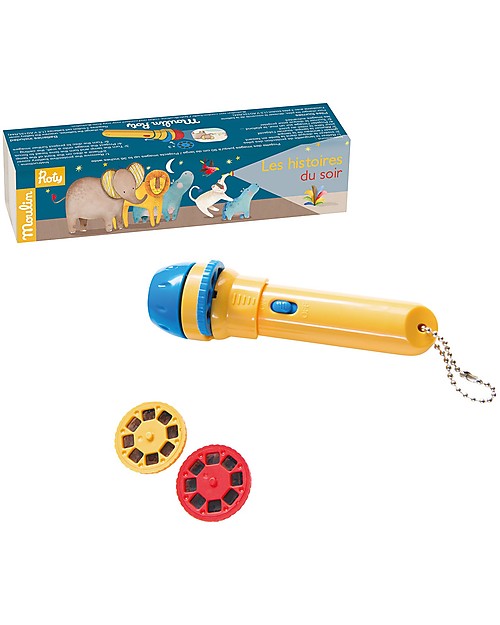 Sogna e crea con la Torcia Proietta Storie della Buonanotte di Moulin Roty! Un divertente gioco di luci come le diapositive di una volta, per raccontare l'avventura di "Les Papoum" e far viaggiare la fantasia dei bimbi prima di addormentarsi. Cambia storie, inventa storie e sogna: monta tre dischi con diverse immagini e vivi una magica avventura!