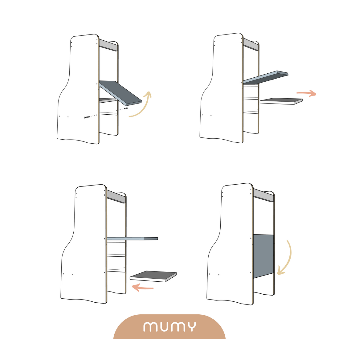 Progettata per crescere con il bambino, questa struttura offre 3 altezze regolabili per adattarsi alle diverse fasi dello sviluppo, garantendo sempre la massima sicurezza durante le attività quotidiane e il percorso di apprendimento, fino ai 5 anni.