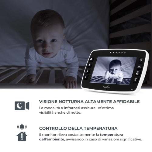 Inoltre, è possibile controllare la temperatura dell'ambiente tramite l'apposita funzione che emette un segnale sonoro in caso di variazioni significative (troppo caldo o troppo freddo) che potrebbero compromettere il sonno o la salute del bambino.