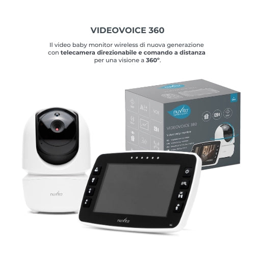 Videovoice 360 di Nuvita è il video baby monitor wireless con telecamera direzionabile e comando a distanza per offrire una visione a 360º sulla stanza del bambino.