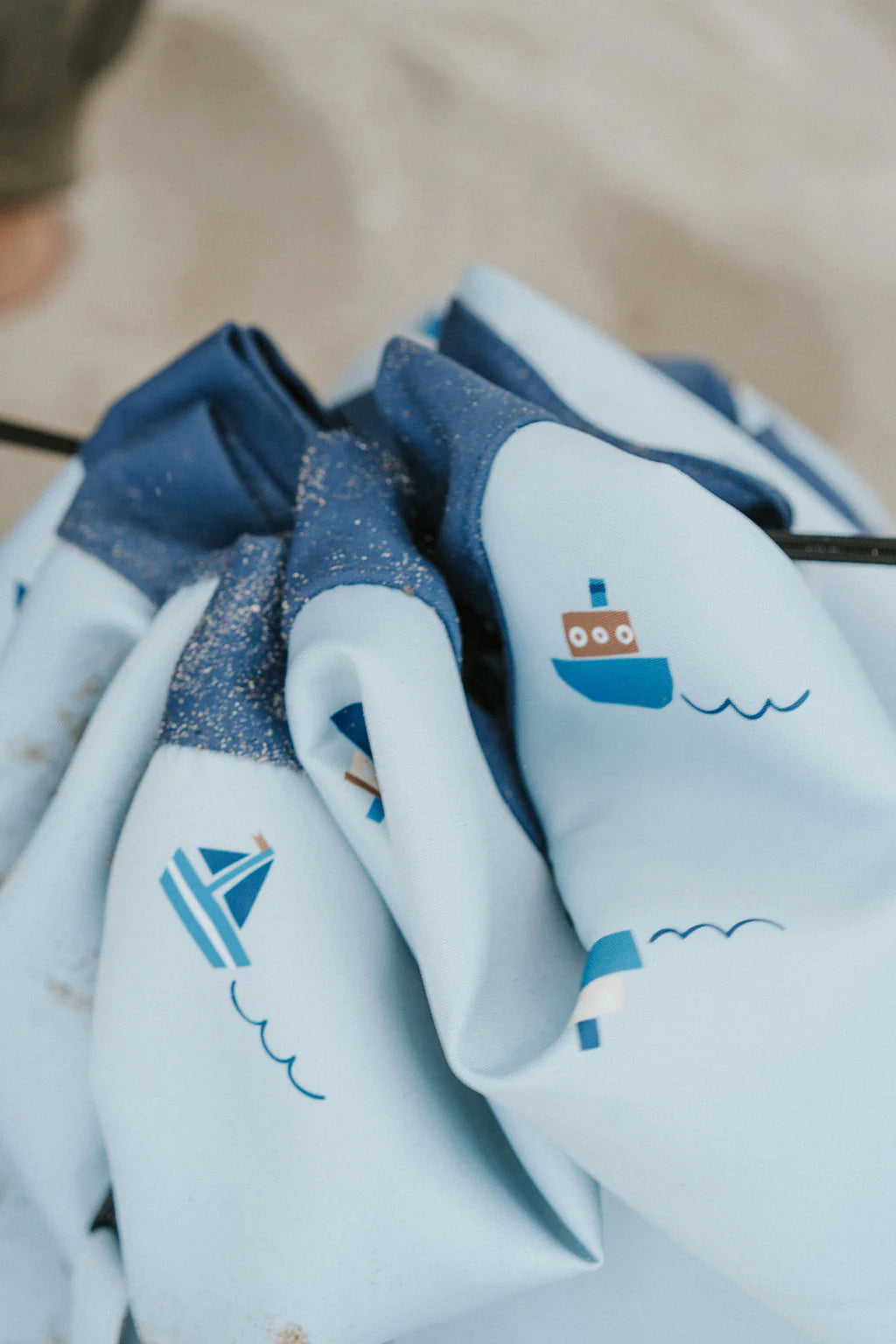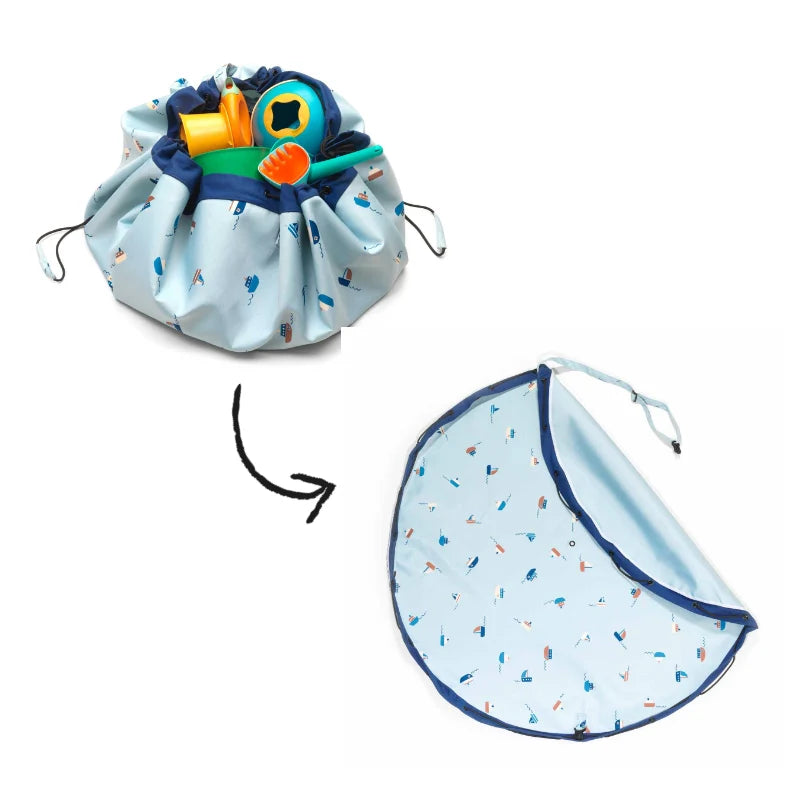 Porta con te e divertiti ovunque con Play&Go! Il sacco portagiochi e tappeto da gioco 2 in 1 è la soluzione impermeabile ideale per mare, parco, montagna e picnic. Disponilo a terra per giocare o sederti, poi basta tirare la corda per raccogliere tutto. Trasporto facile grazie alla tracolla regolabile. Inoltre il sacco è dotato di un foro per la fuoriuscita di sabbia.