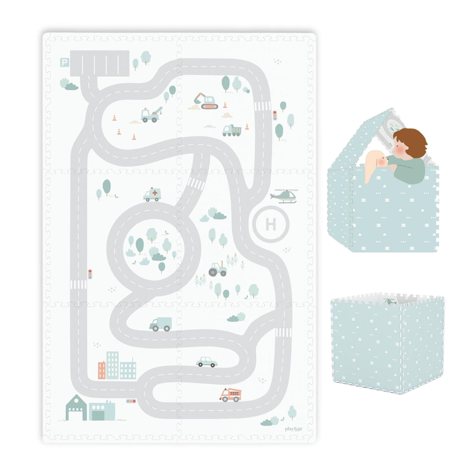 Salta, gioca e sogna con il tappetino puzzle Play&Go 3-in-1! Realizzato in schiuma EVA premium spessa 1,4 cm, questo morbido e sicuro tappetino da gioco si trasforma in pochi secondi in una pratica scatola portaoggetti o in una casetta per giocare.