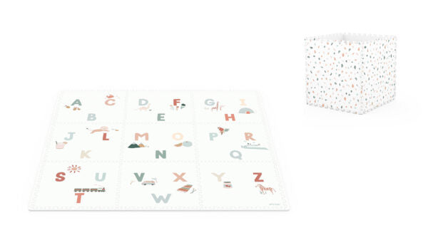 Rendi divertente e sicuro il gioco dei tuoi bambini con il tappeto Play & Go EEVA! Soluzione 2-in-1, funziona sia come tappeto puzzle reversibile che come scatola portaoggetti. Realizzato in schiuma EVA atossica, morbido e facile da pulire, ideale per tutte le età. Include 9 mattonelle con i colorati caratteri dell'Alfabeto o dei Numeri.