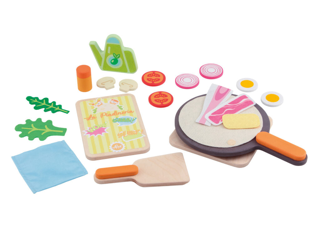 Esplora la tua creatività culinaria con il gioco completo Sevi - Set Piadina e prepara un piatto delizioso e divertente. Decorato nei minimi dettagli, il set include una pentola per cucinare le piadine e una paletta per girarle. Farcisci le piadine con gli ingredienti a disposizione e servile nel vassoio incluso. Infine riponi il set per una prossima deliziosa avventura culinaria!