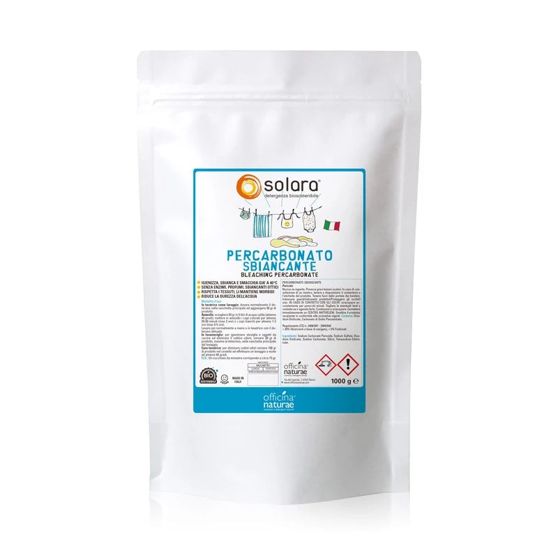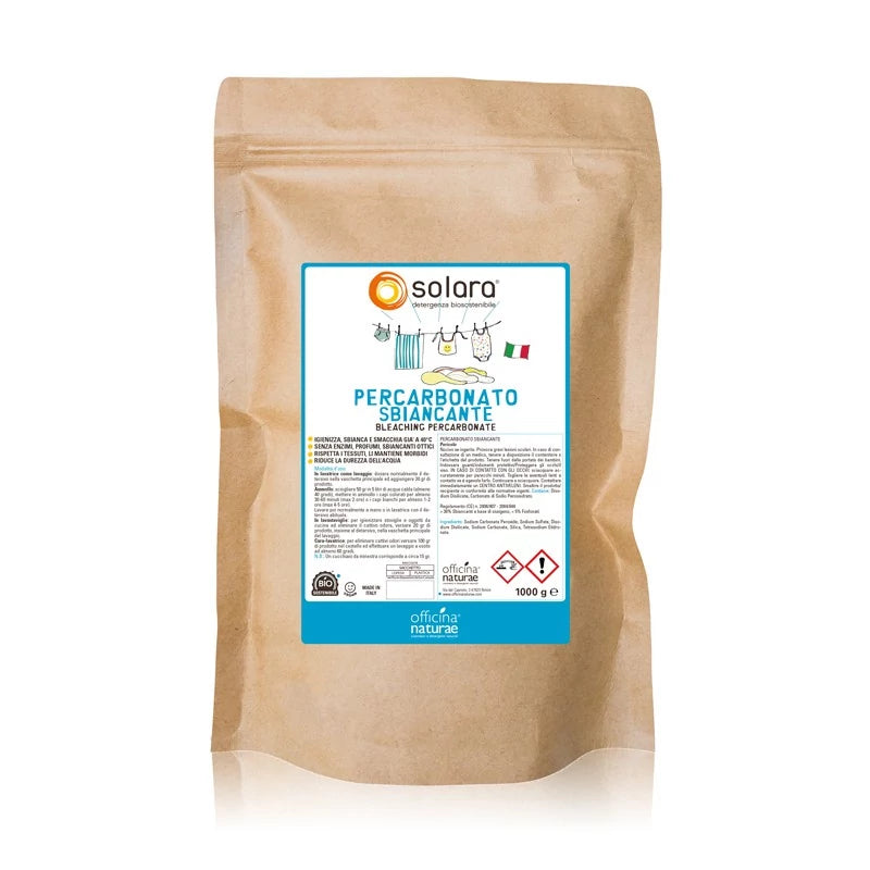 Il Percarbonato Sbiancante Solara ha una formula priva di enzimi, tensioattivi o sbiancanti ottici.