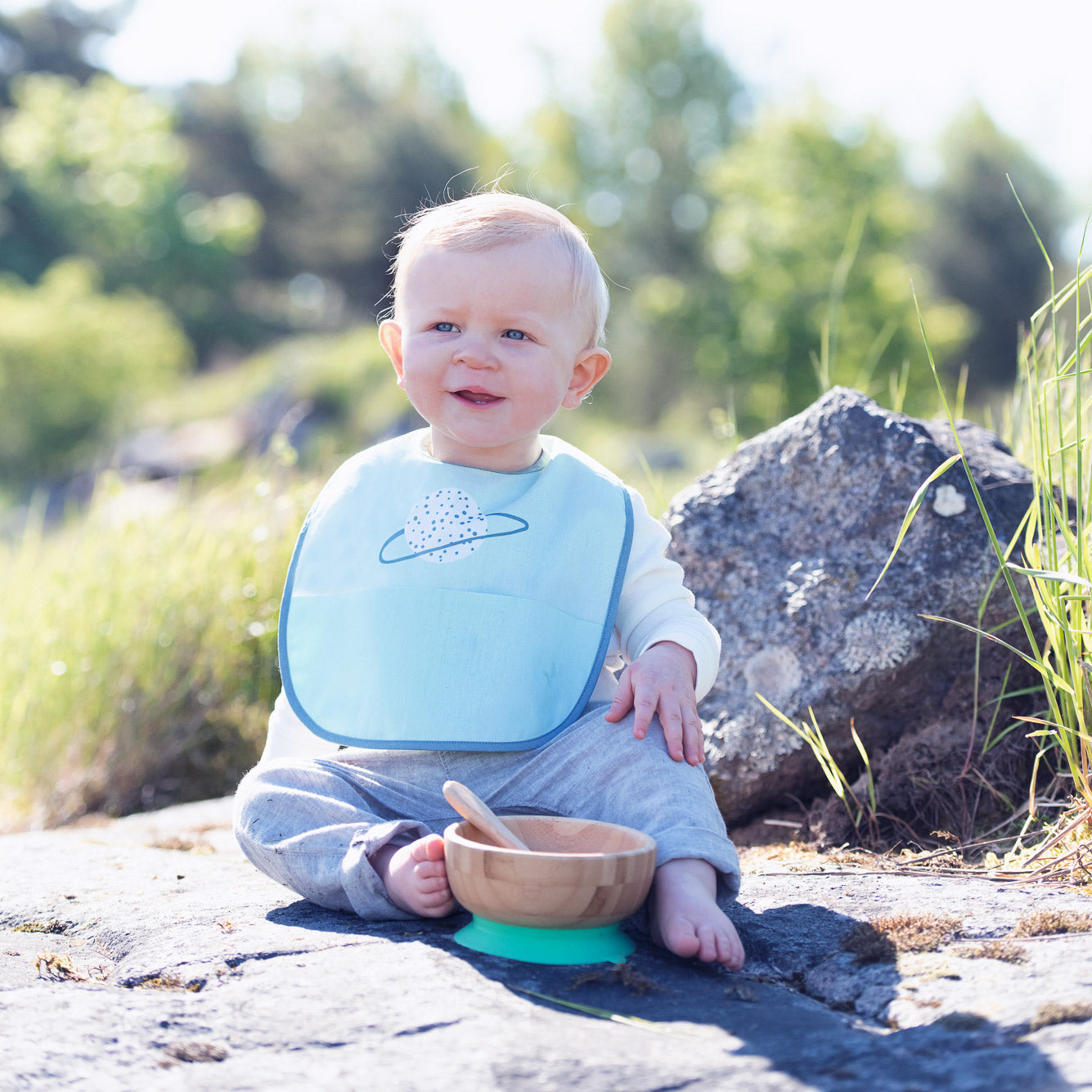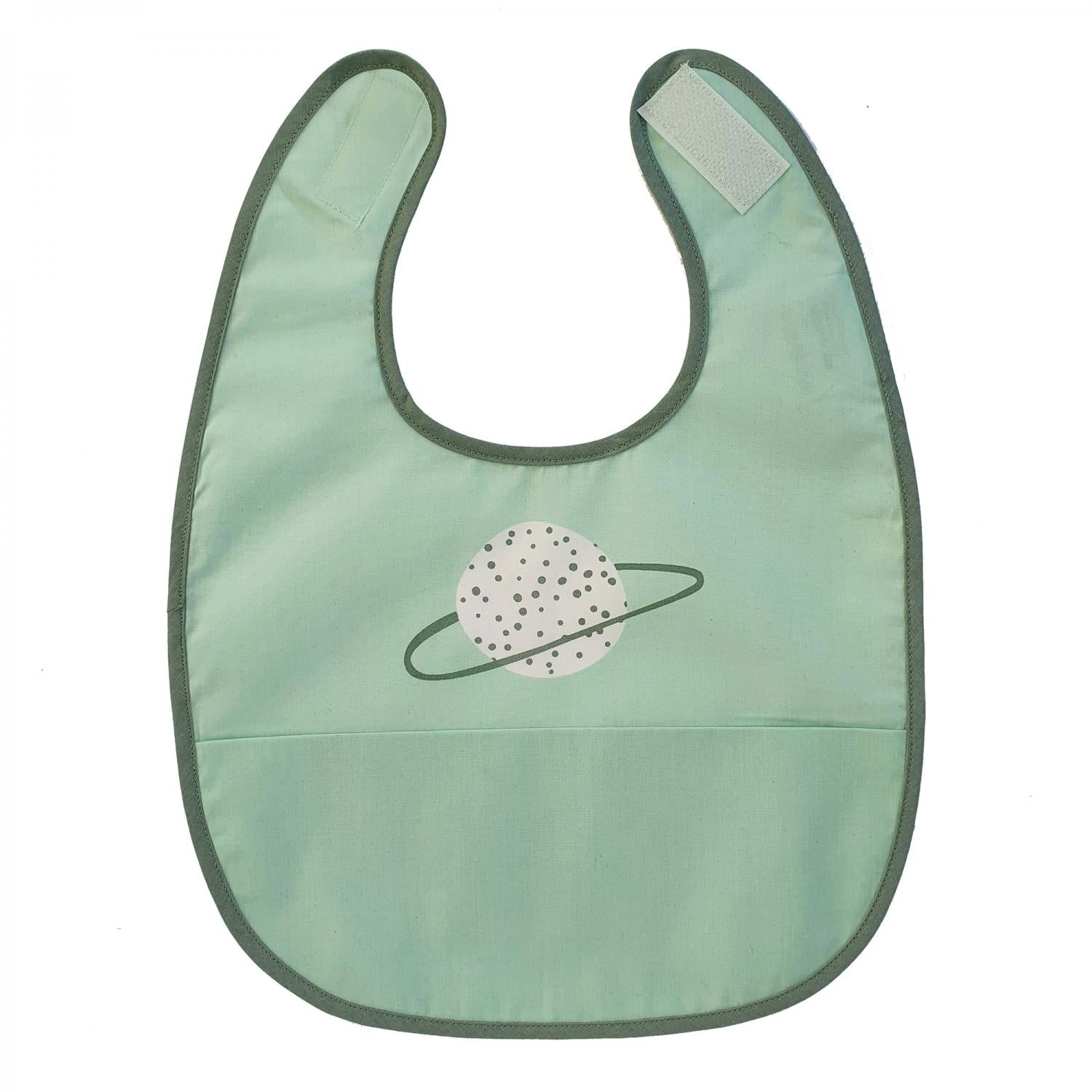 Preparati per l'avventura con il Bavaglino Summerville per bambini da 0 a 18 mesi! Realizzato in morbido cotone organico, offre un'esperienza confortevole per il tuo bambino. La sua superficie idrorepellente previene macchie e permette di pulirlo facilmente. Il velcro regolabile al collo e la tasca frontale lo rendono pratico e versatile. 100% cotone organico e resistente all'acqua!