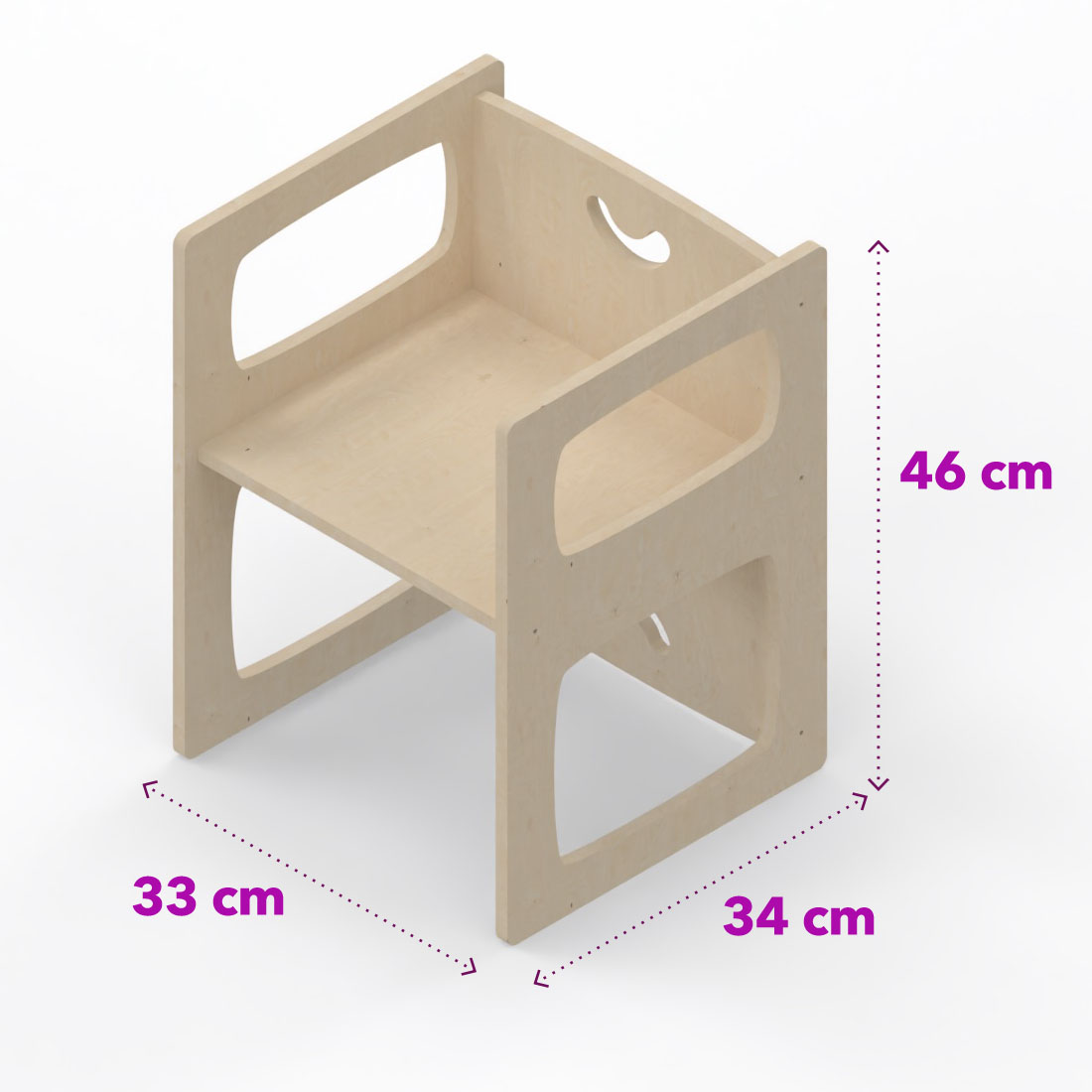 Con la sedia Smile il bambino è incoraggiato ad avere iniziativa propria, muovendosi in uno spazio sicuro ed alla sua portata, ispirata ai principi di Maria Montessori. In combinazione con il banco avrà uno spazio alla sua altezza dove poter lavorare, giocare o apparecchiarsi i pasti. È adatto per i bambini a partire dai 12 mesi che abbiano sviluppato le necessarie capacità motorie.