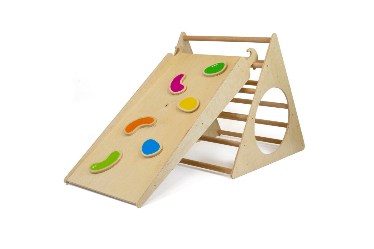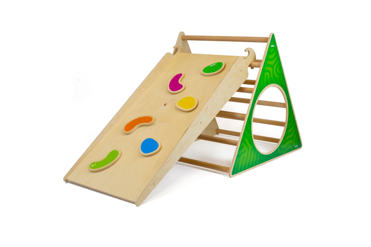 Scopri il mondo del movimento con il Triangolo di Pikler! Creato dalla pediatra Emmi Pikler, questo strumento in legno stimola lo sviluppo motorio dei bambini in modo sicuro ed autonomo. Libera la creatività e la fiducia dei tuoi piccoli, senza limiti o pericoli. Una sfida entusiasmante per tutti i bambini!