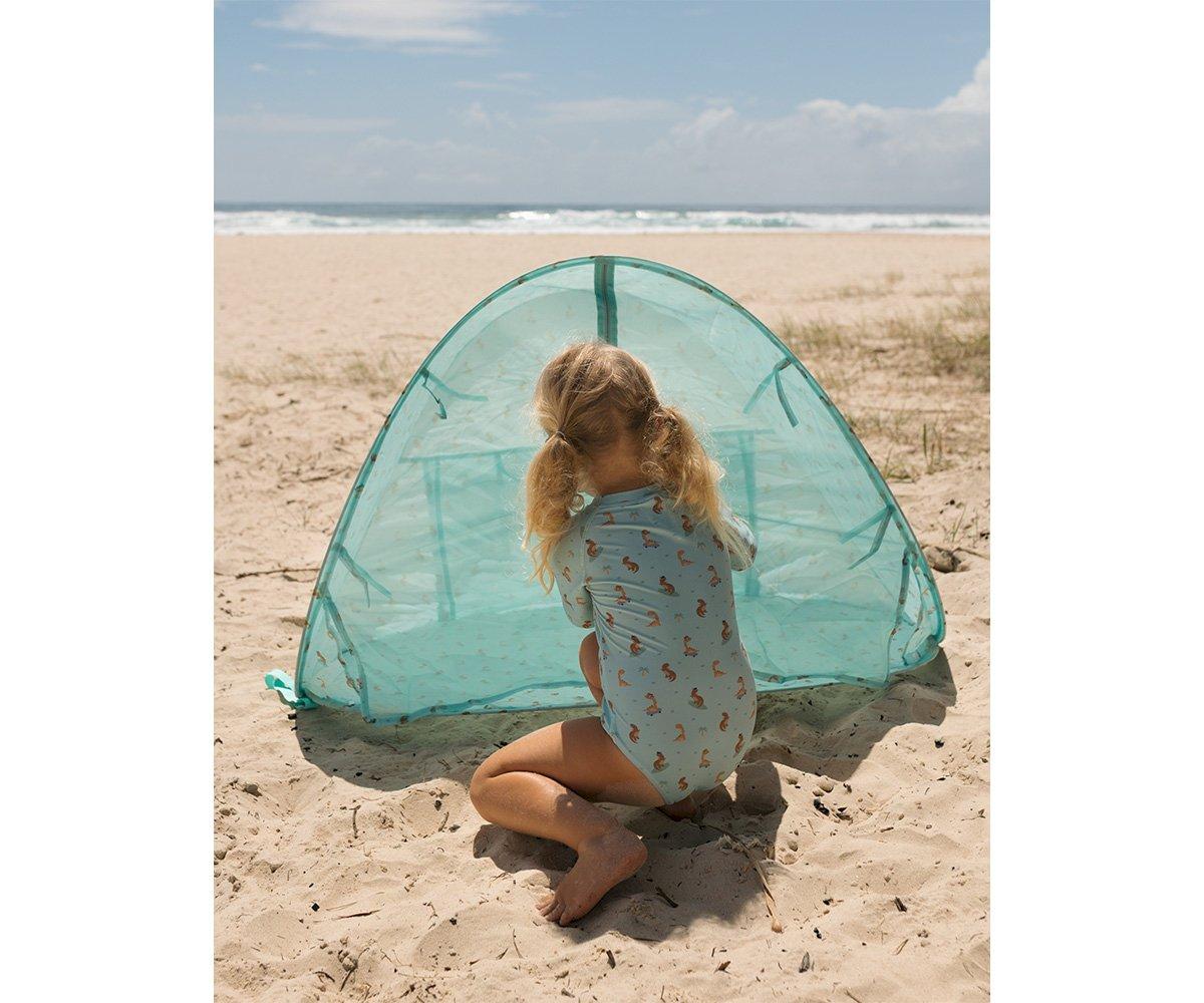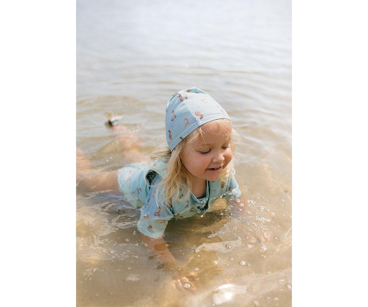 Cappello da spiaggia per bebè con protezione UV 50+, visierina e patellina per coprire il collo. E' ideale per la spiaggia e la piscina, lascia respirare ed asciuga rapidamente.