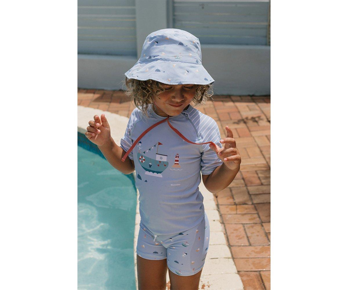 Cappello da spiaggia per bebè con protezione UV 50+, visierina e patellina per coprire il collo. E' ideale per la spiaggia e la piscina, lascia respirare ed asciuga rapidamente.